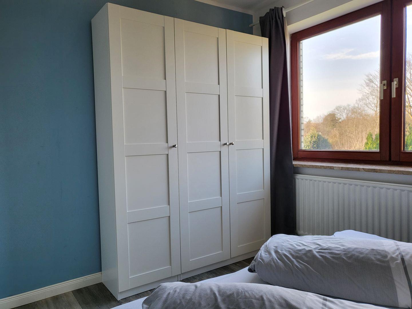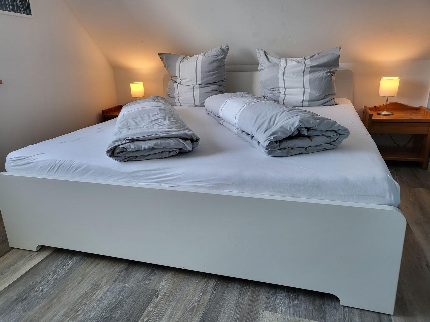 Das Schlafzimmer ist ausgestattet mit komfortablem 180x200cm Doppelbett und einem großen Kleiderschrank. Ein Babyreisebett sowie ein Kinderhochstuhl stehen kostenfrei zur Verfügung.