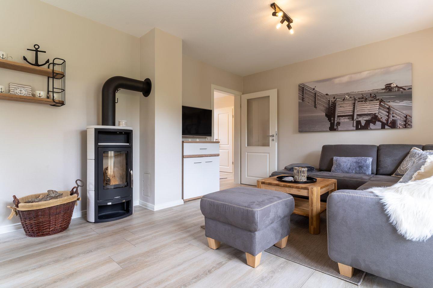 Wunderschöne Reetdachhaushälfte in St. Peter-Ording mit Kamin, Terrasse und moderner Ausstattung für entspannte Urlaubstage.