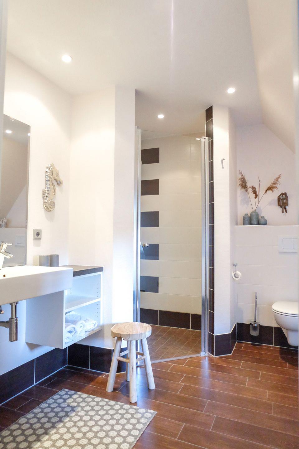 Zum Obergeschoss gehört noch ein weiteres Badezimmer, welches ebenfalls mit bodengleicher Dusche und WC ausgestattet ist.
