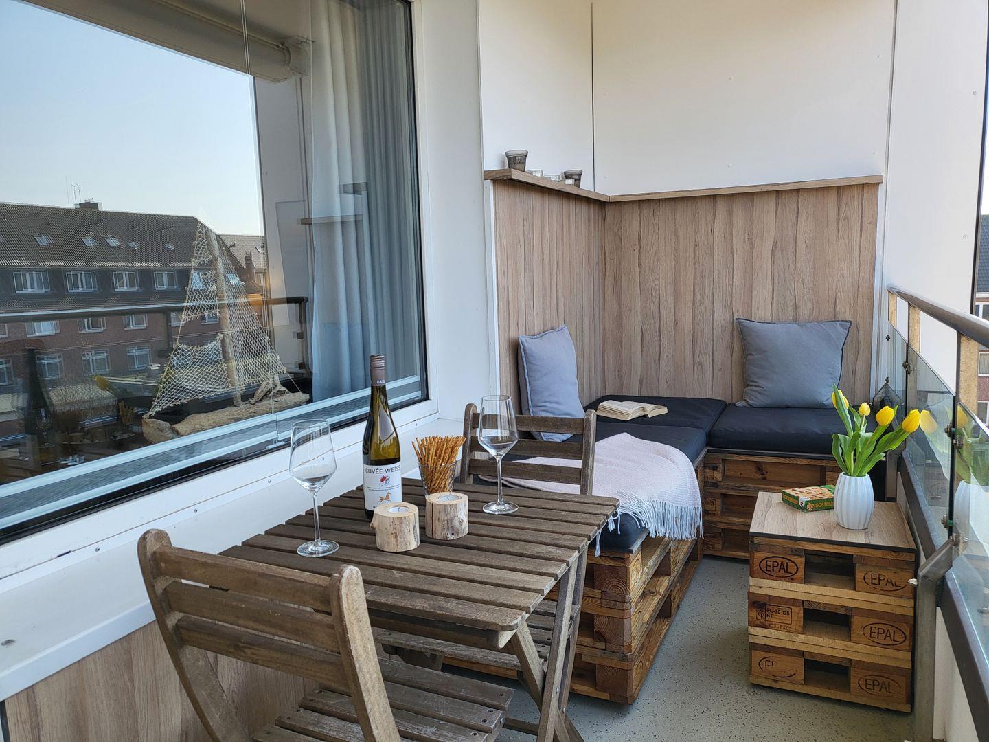 Modernes 2-Zimmer-Apartment mit möbliertem Balkon und Seeblick in St. Peter-Ording.