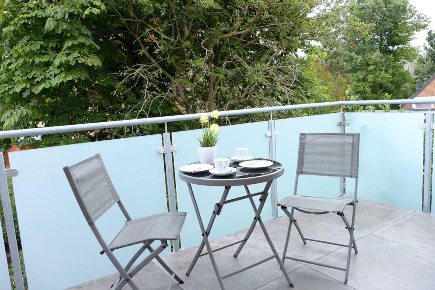 Auf dem Balkon mit Gartenmöbeln genießen Sie Ihr Frühstück. Der Garten rundet das Nichtraucher-Objekt ab.