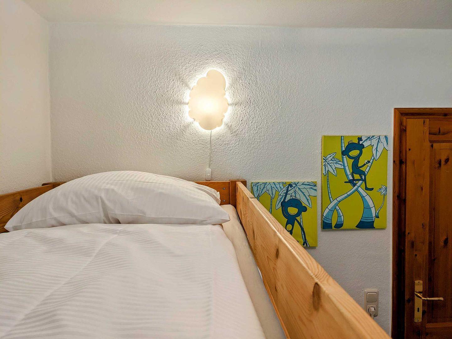 Das dritte Schlafzimmer verfügt über ein Etagenbett für Kinder. Dort gibt es eine Auswahl an Büchern und Spielen, auch ein Radio mit CD-Spieler is vorhanden.