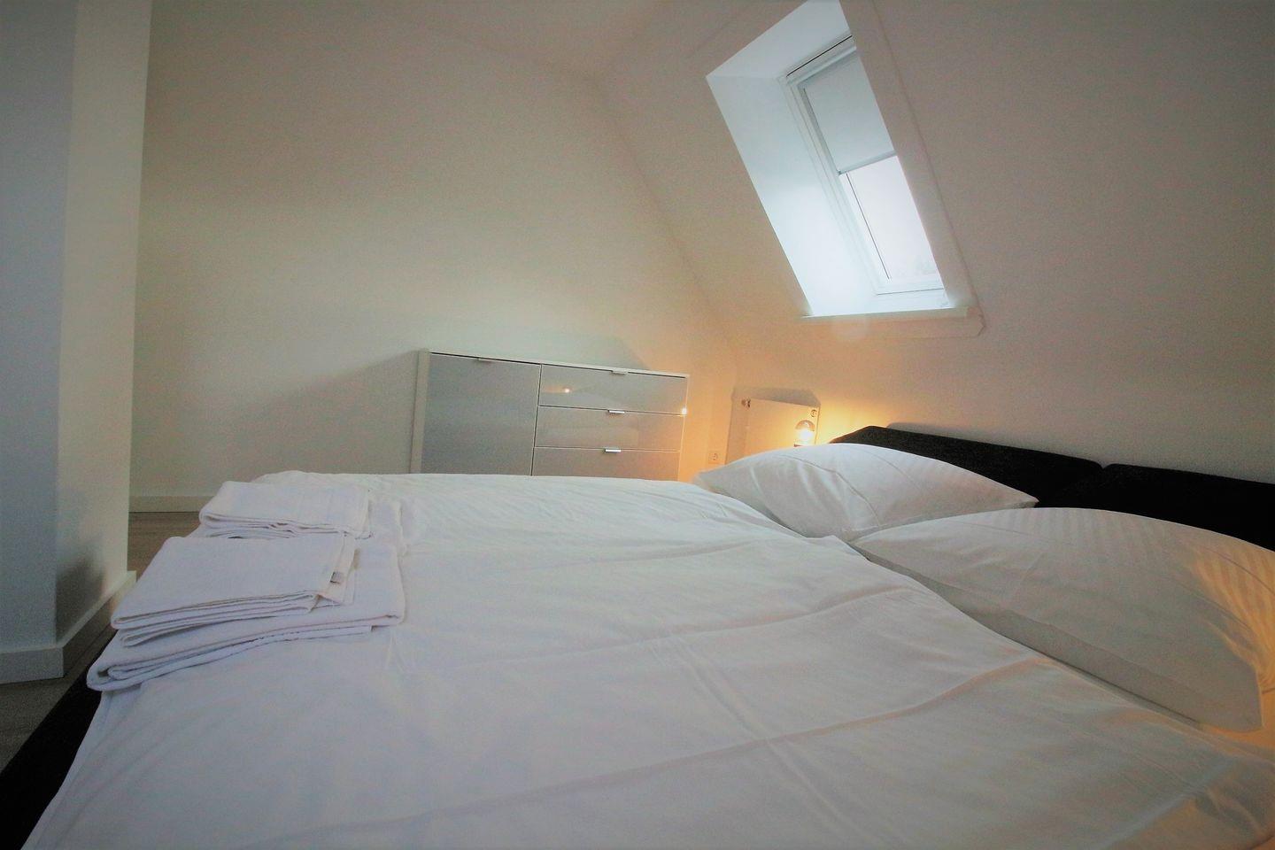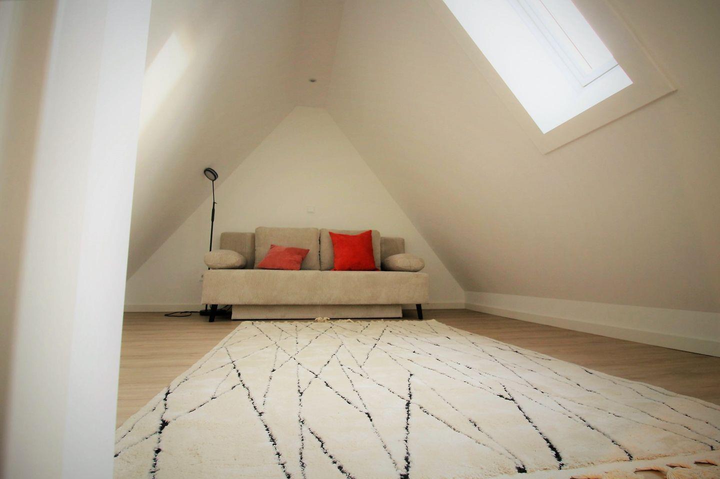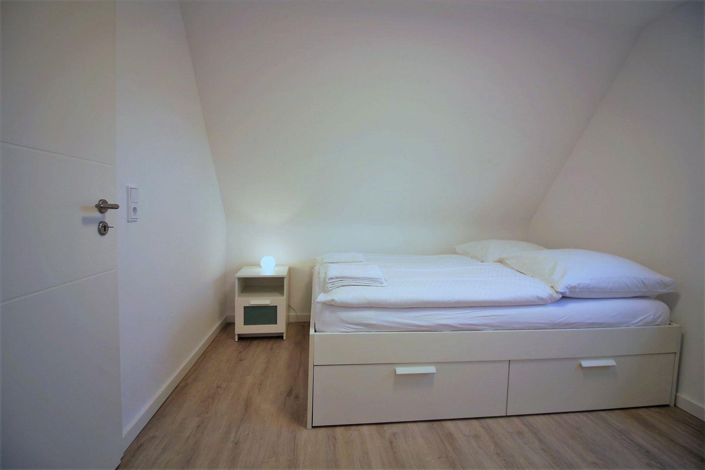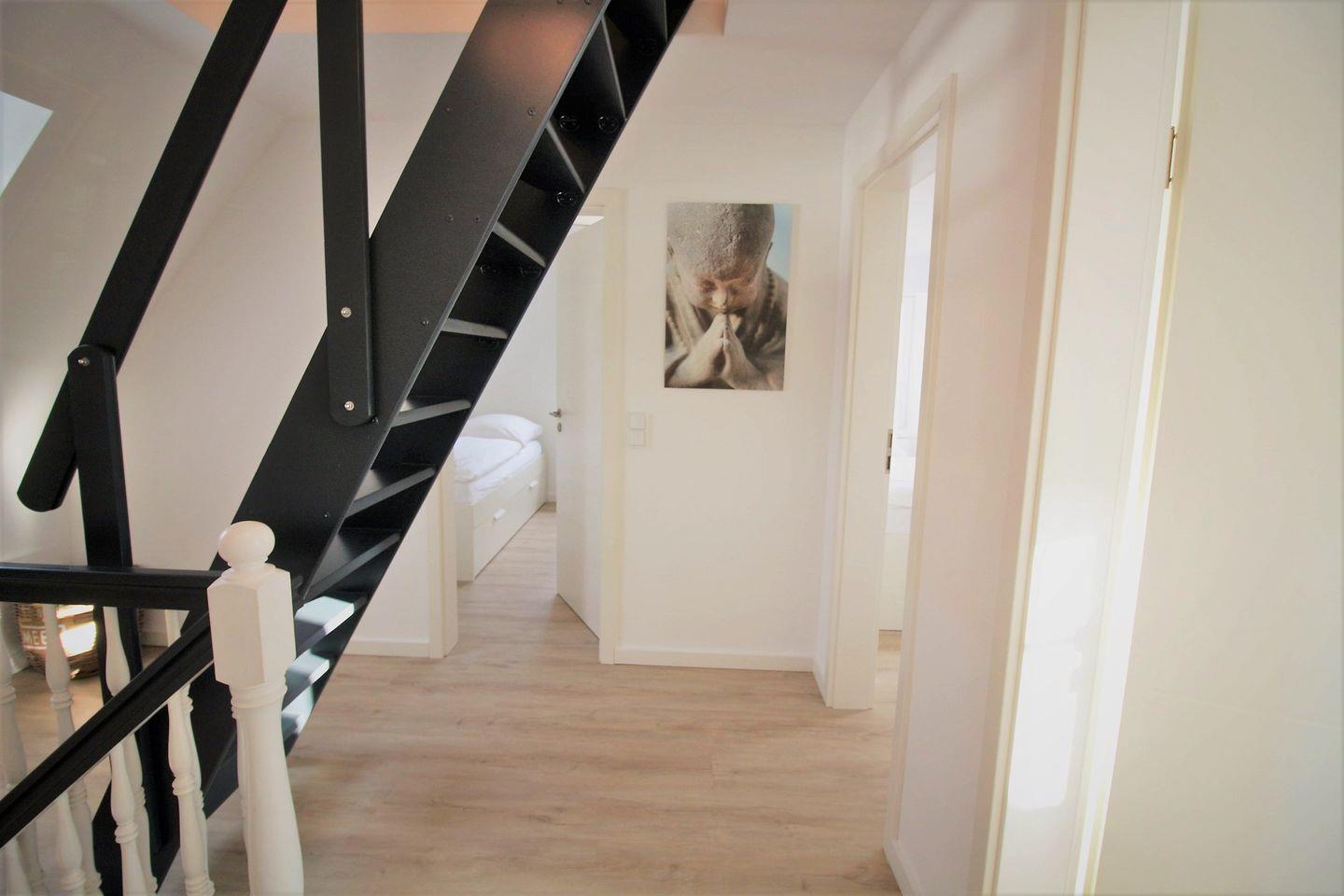 Im Dachgeschoß, die Treppe ist etwas steiler, ist ein weiteres Schlafzimmer mit 160x200cm Doppelbett und TV, sowie ein Aufenthaltsraum mit Sofa als Rückzugsort zum Lesen.