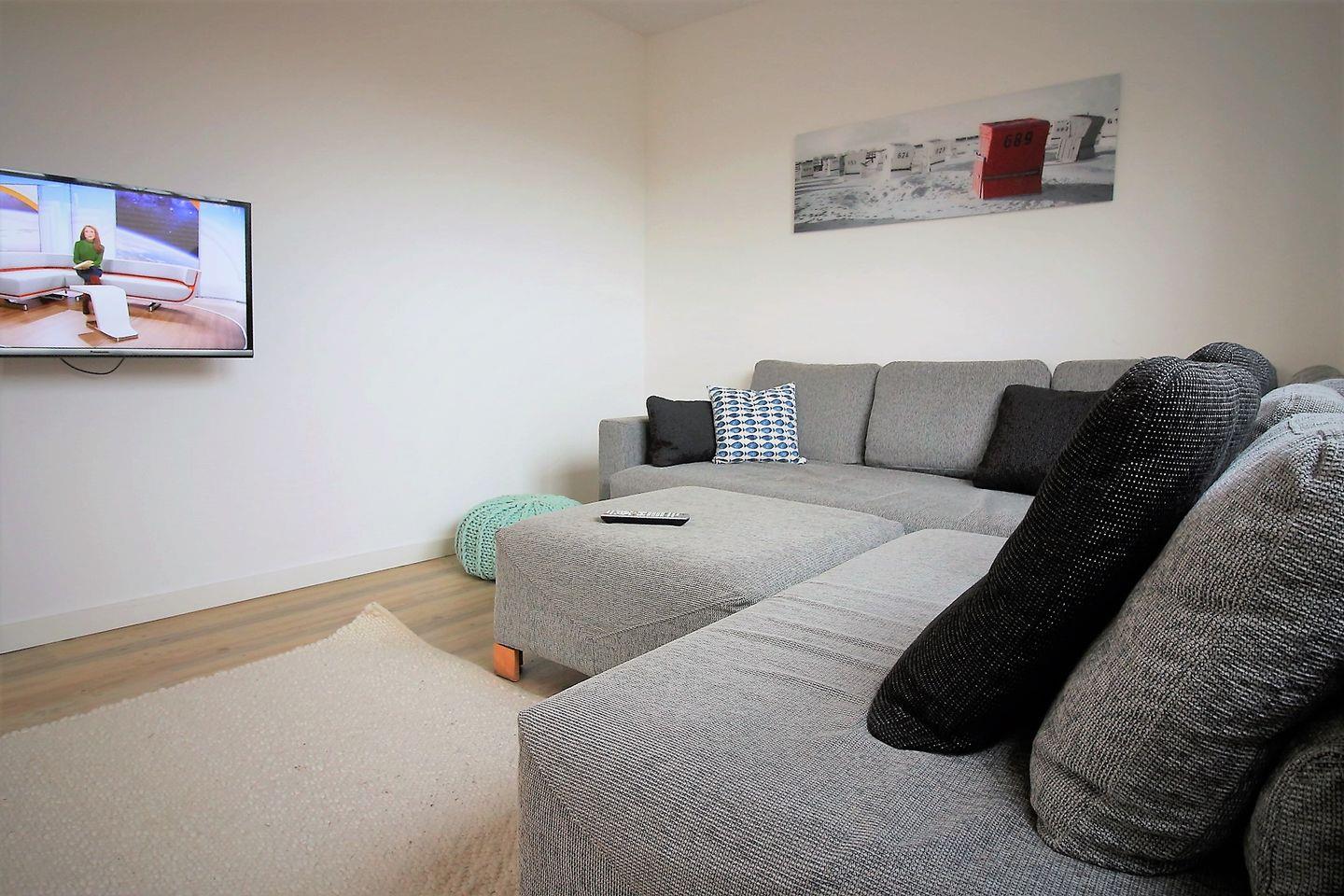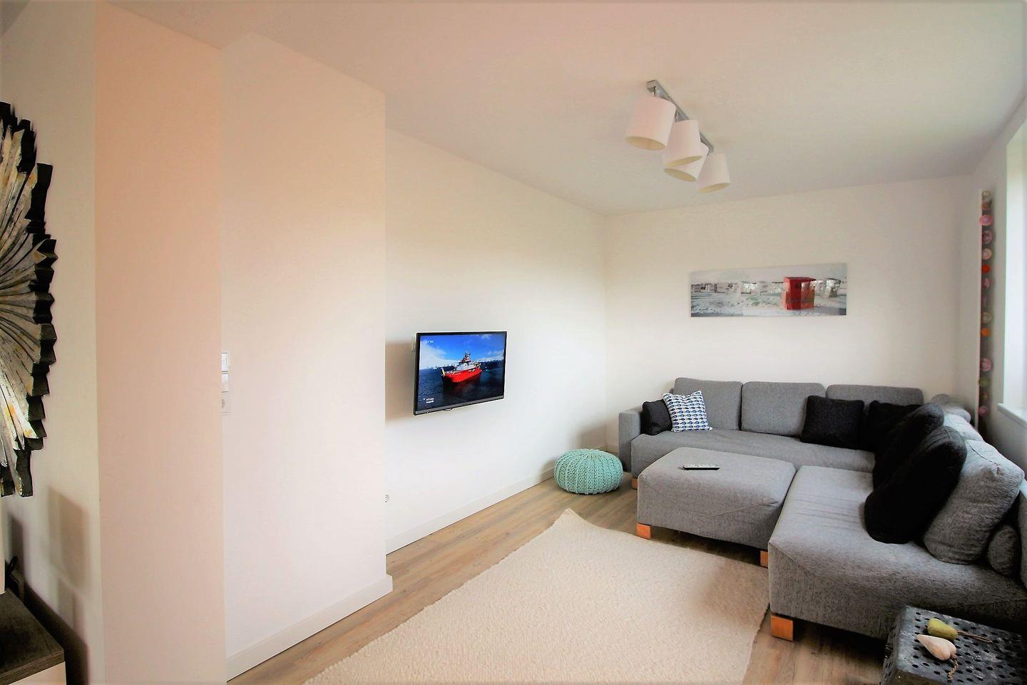 Vom Wohn-Essbereich gelangen Sie in das eigentliche Wohnzimmer mit gemütlicher Eckcouch und TV.