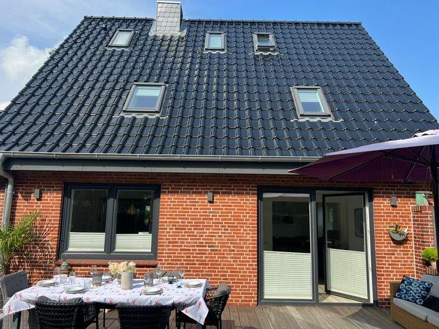 Charmantes Ferienhaus Zum Haifisch mit Garten, Terrasse und Kaminofen nahe St. Peter-Ording.