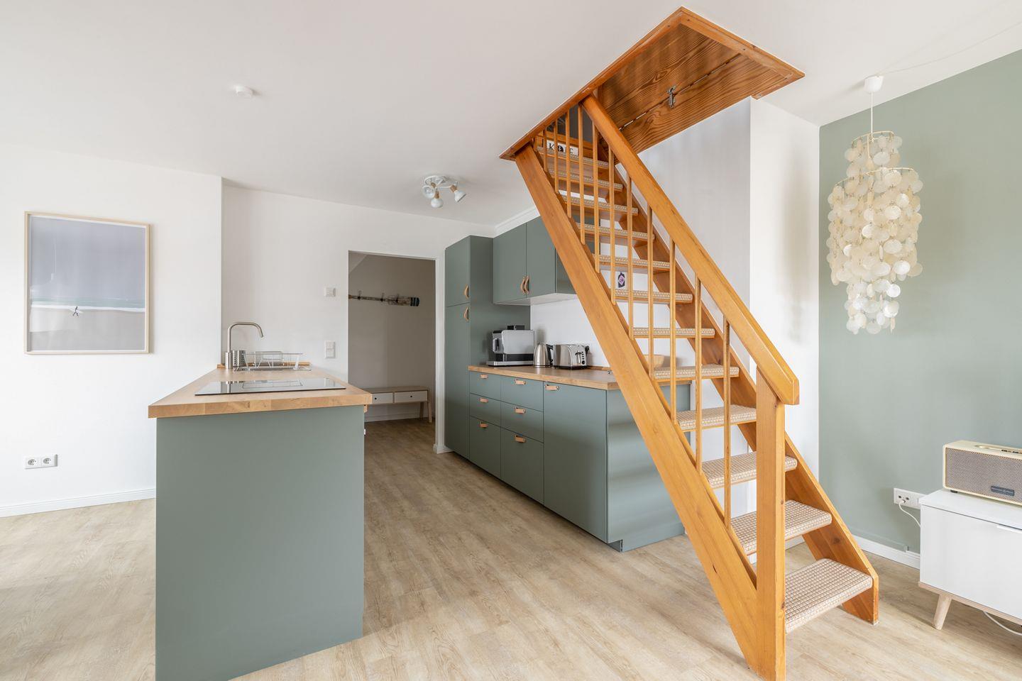 Die 65qm große Ferienwohnung eignet sich ideal für bis zu 2 Personen. Die in 2021 komplett renovierte und modern eingerichtete Ferienwohnung lädt Sie mit einem gemütlichen Wohnraum mit offener, sehr gut ausgestatteter Küche und Essbereich zum Beisammensein ein. Das Schlafzimmer mit Doppelbett (180 x 200) und offener Schranknische erreichen Sie über eine offene Treppe aus dem Wohnraum heraus. Auf Anfrage können 1 Erwachsener oder bis zu 2 kleine Kinder zusätzlich in der offen mit dem Schlafzimmer verbundenenen Schlafnische übernachten.