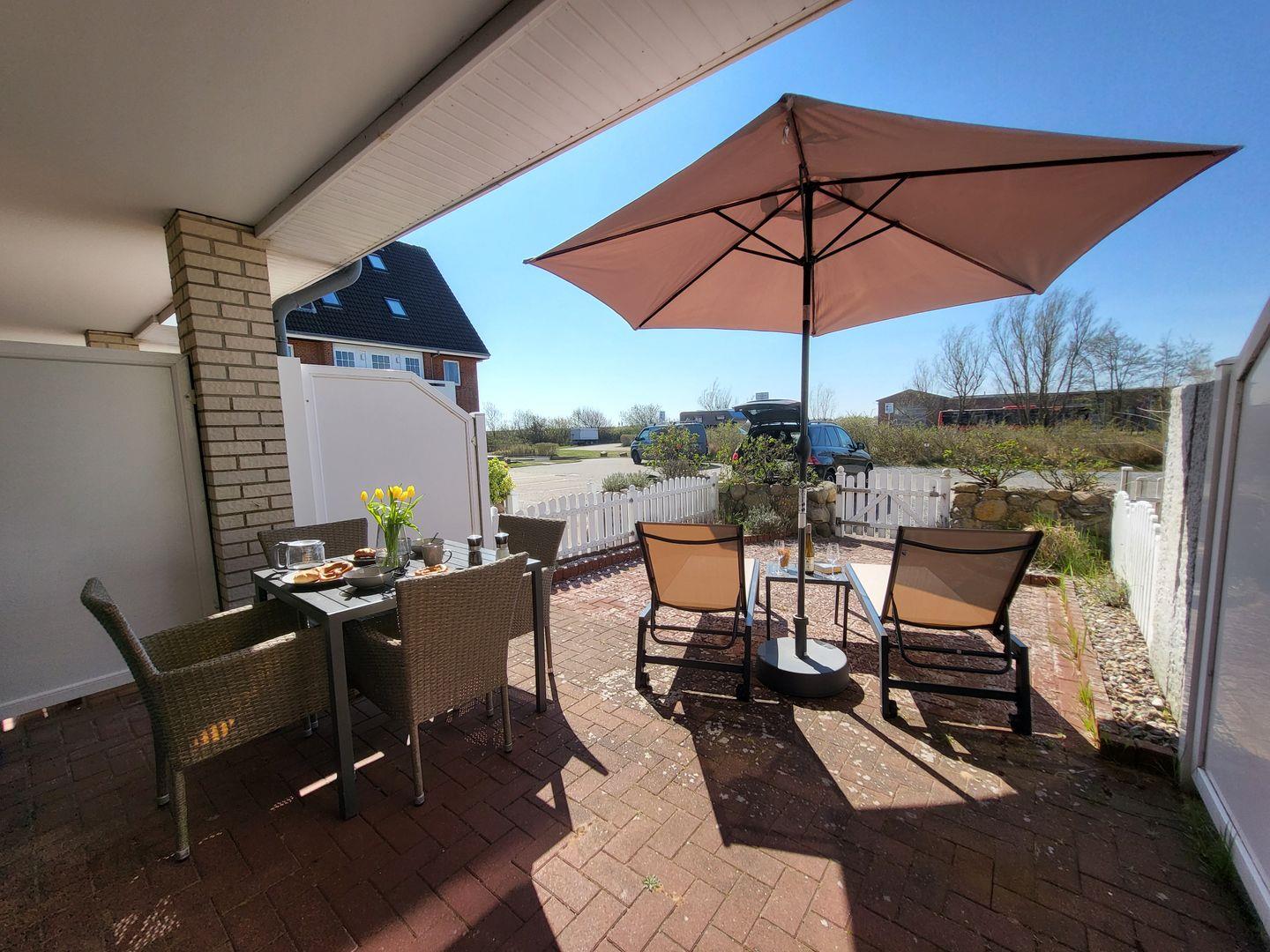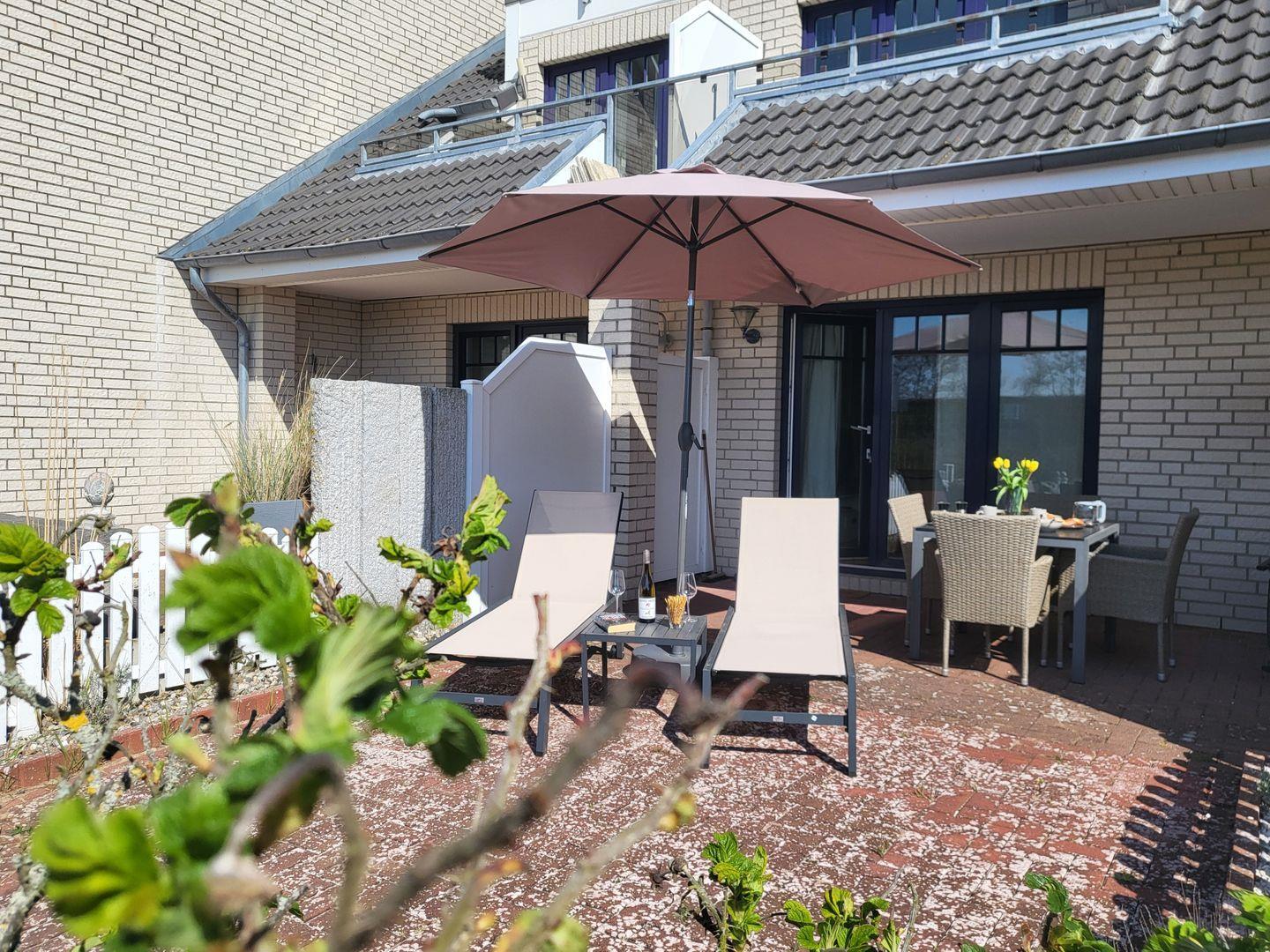 Die moderne, 49m² große 2-Zimmer Ferienwohnung liegt im Erdgeschoss und bietet 2 Personen Platz für einen besonders strandnahen Urlaub in St. Peter-Ording. In der hundefreundlichen Ferienwohnung begleitet Sie ein kleiner Hund auf Anfrage. Der Böhler Sandstrand liegt nur wenige Gehminuten entfernt. Die Lage verspricht Ruhe, Entspannung und die wunderbare Nordseeküste direkt vor der Haustür. Betreten und verlassen können Sie die Ferienwohnung auch über die eingezäunte und sichtgeschützte Terrasse. Zur möblierten Terrasse gehören Sonnenliegen, Gartenstühle und ein Terrassentisch. Stilvoll und mit viel Liebe eingerichtet präsentiert sich der Wohnraum. Dort steht eine gemütliche Couch zur Verfügung, für die multimediale Unterhaltung sorgen Flachbild-TV und kostenfreies W-LAN. Die Couch kann als alternativer Schlafplatz für eine Person genutzt werden. In den Raum integriert ist die moderne Küchenzeile, die unter anderem mit Induktionskochfeld und Backofen sowie Mikrowelle, Kühlschrank und Kaffeemaschine ausgestattet ist. Das separate Schlafzimmer ist mit einem 180x200cm Doppelbett ausgestattet. Zur Ferienwohnung gehört ein helles Duschbad mit WC, im gemeinschaftlich genutzten Waschraum stehen Münzwaschtrockner zur Verfügung.