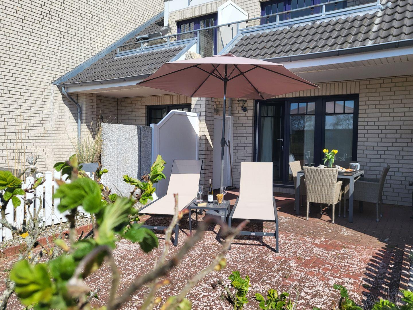Moderne Ferienwohnung Deichglück 2 in St. Peter-Ording, strandnah, hundefreundlich mit Terrasse und WLAN.