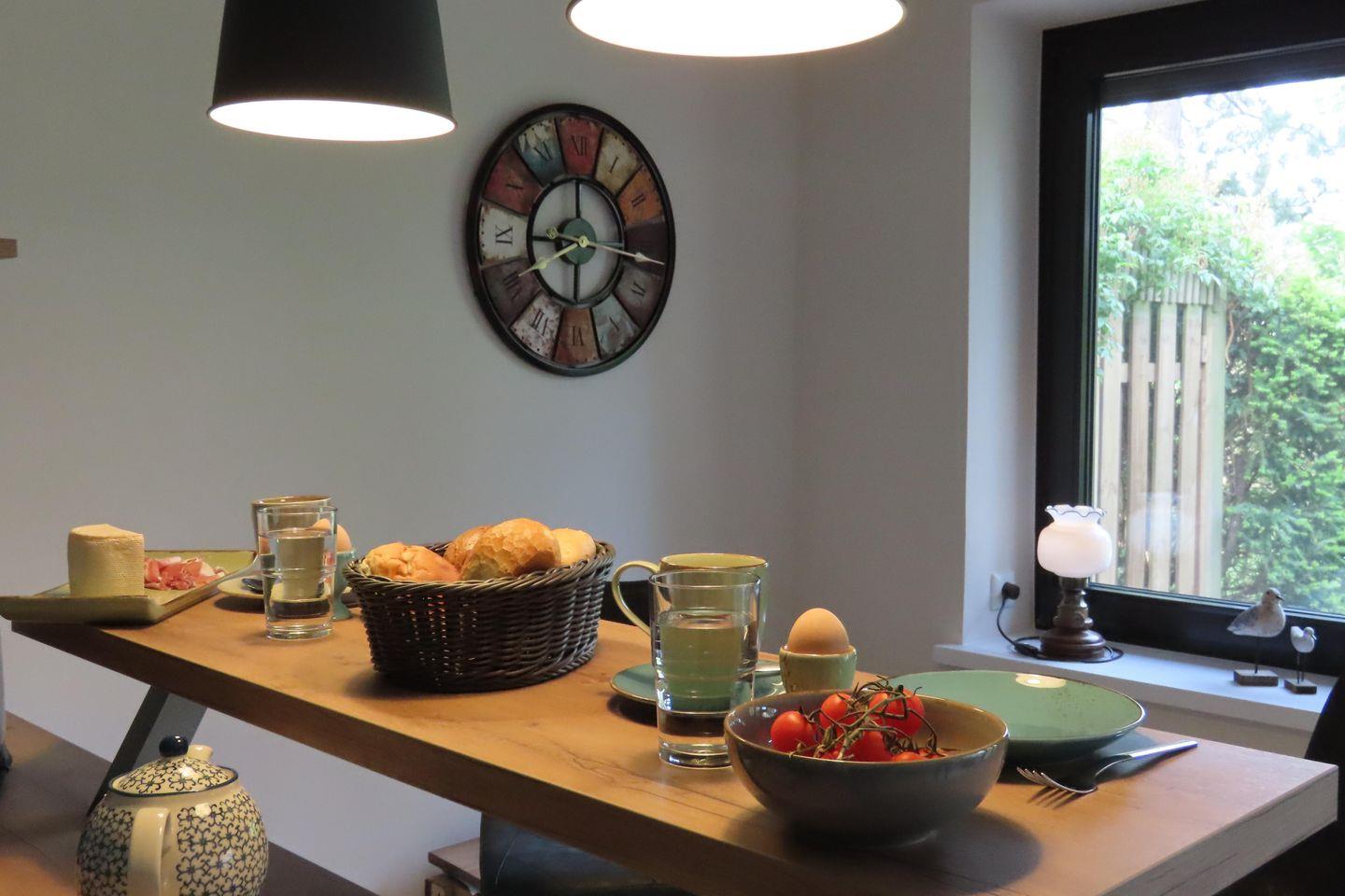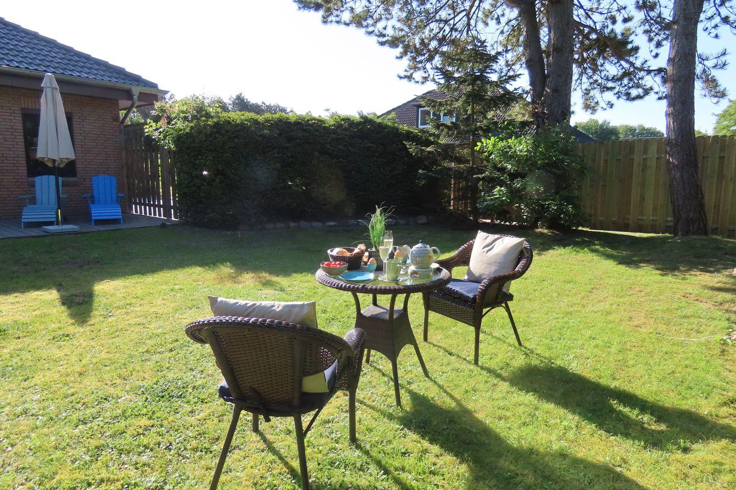 Neu renoviertes Reihenendhaus (58 qm) auf ruhigem Waldgrundstück in Böhl. Ca. 10 Gehminuten zum Seedeich und Dorfzentrum. Voll ausgestattet mit Sat-TV, Geschirrspüler, Herd, Mikrowelle, möblierter Terrasse. Gartenhaus für Fahrräder, PKW-Stellplatz mit E-Ladesäule (gegen Gebühr). Raumaufteilung: Wohn-Essbereich mit Küche, Kaminofen, Schlafzimmer mit Doppelbett, Bad mit Dusche.