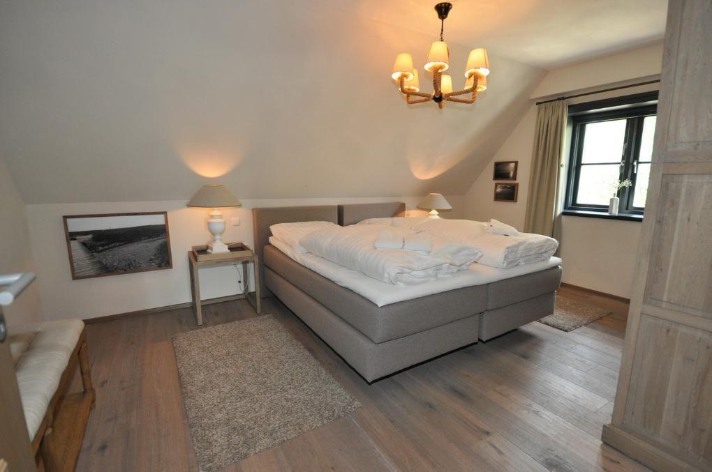 Vom Wohnraum führt eine Treppe zur Galerie, auf der eine bequeme Chaiselounge zum gemütlichen Verweilen einlädt. Die Terrasse in Westausrichtung verfügt über einen kleinen Gartenanteil und ist mit einem Strandkorb ausgestattet.