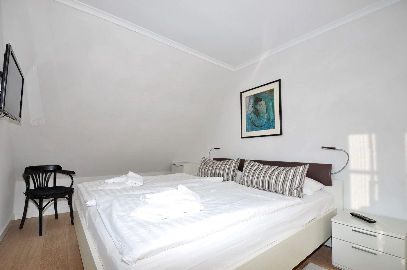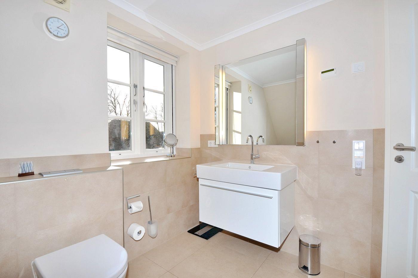 Obergeschoss: 1 Schlafzimmer mit Doppelbett (je 180 x 200 cm - Einzelmatratzen), 1 Schlafzimmer mit 2 Einzelbetten (je 90 x 200 cm), ein Wannenbad / WC mit separater Dusche und Handtuchheizung, ein kleiner Arbeitsraum