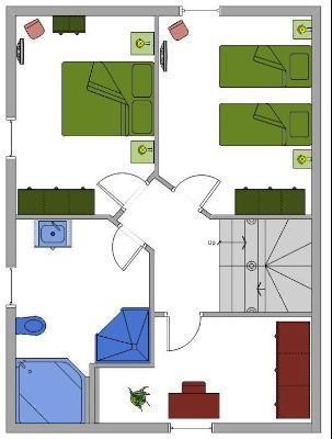 Dachgeschoss: ein Schlafzimmer mit 2 Einzelbetten (je 90 x 200 cm), Kleiderschrank und 2 Sesseln