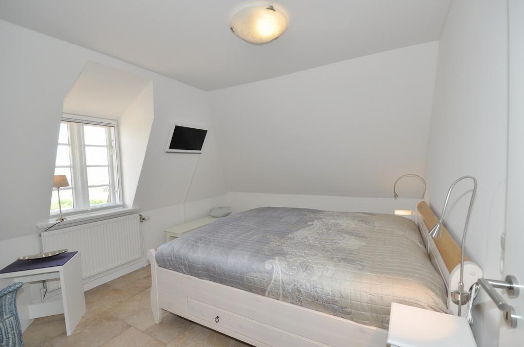 Obergeschoss: kleine Leseecke mit Blick auf den Deich, ein Schlafzimmer mit Doppelbett (180 x 200 cm), ein Schlafzimmer mit 2 Einzelbetten (je 100 x 200 cm - können zum Doppelbett zusammengestellt werden), ein Duschbad / WC mit angeschlossener Sauna