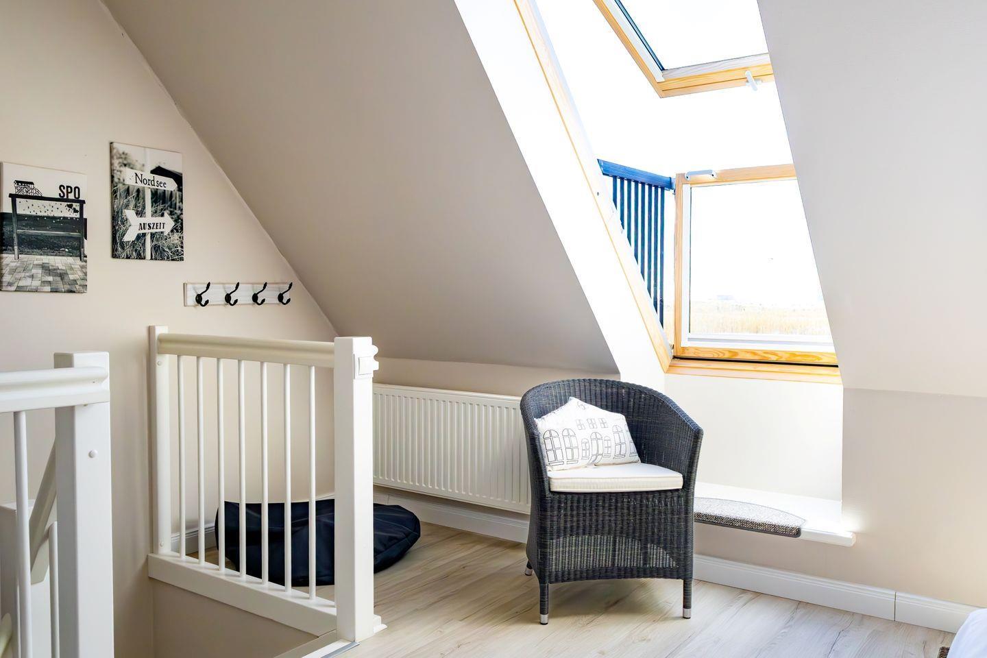 Traumlage mit Meerblick! Die kleine Ferienanlage "Diek Twilling" besteht aus insgesamt 4 Doppelhaushälften direkt hinter dem Deich im Ortsteil Ording. Dahinter lädt der Strand mit seinen typischen Pfahlbauten zu langen Spaziergängen oder ausgiebigem Sonnenbaden ein. 2025 wurde im Ober- und Dachgeschoss ein hochwertiger Vinylfußboden verlegt.