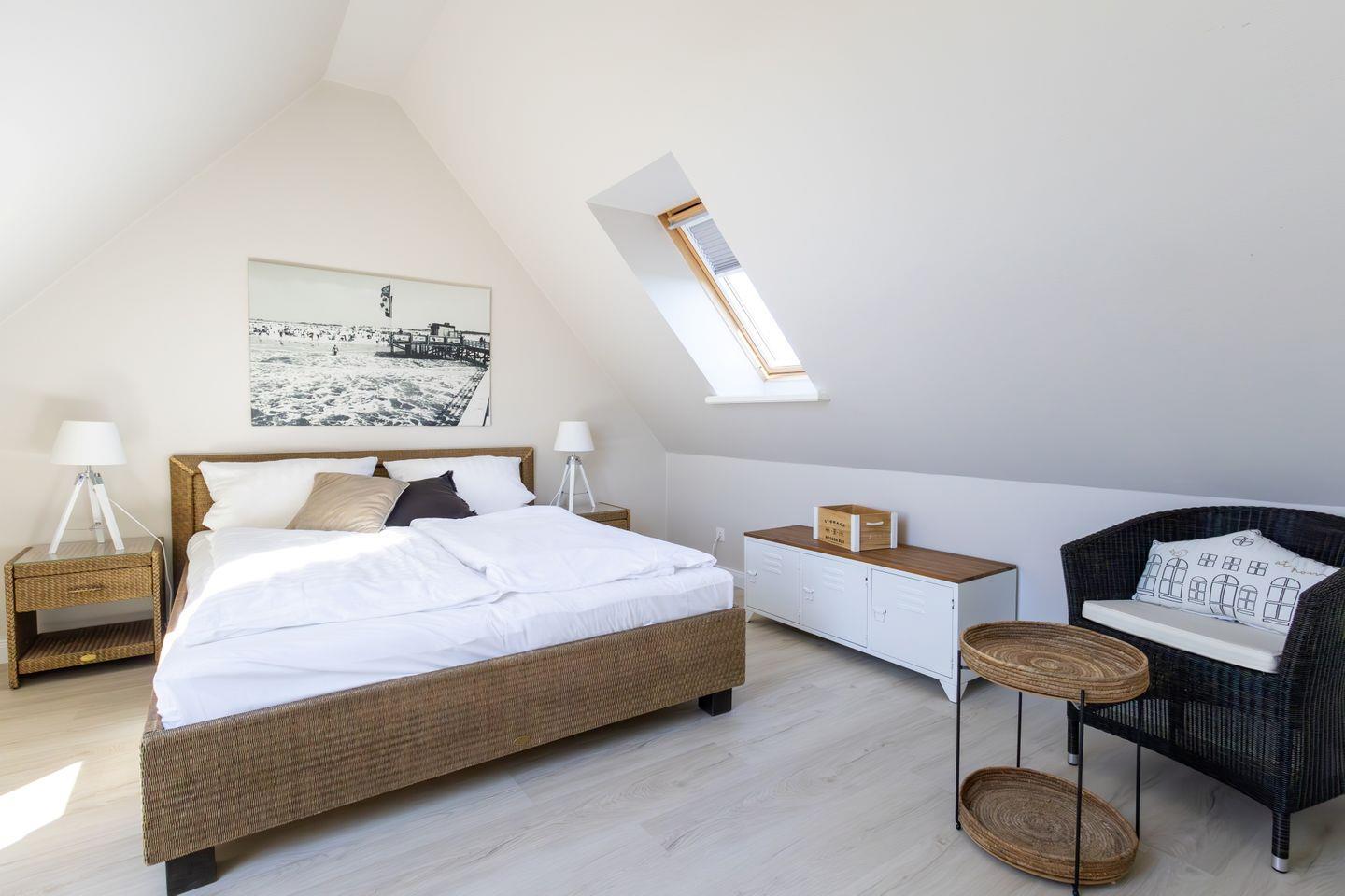Dachgeschoss: ein Schlafzimmer mit Doppelbett (160 x 200 cm)