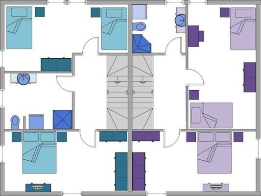Jede Haushälfte umfasst ca. 100 m² Wohnfläche und teilt sich über 3 Ebenen wie folgt auf: