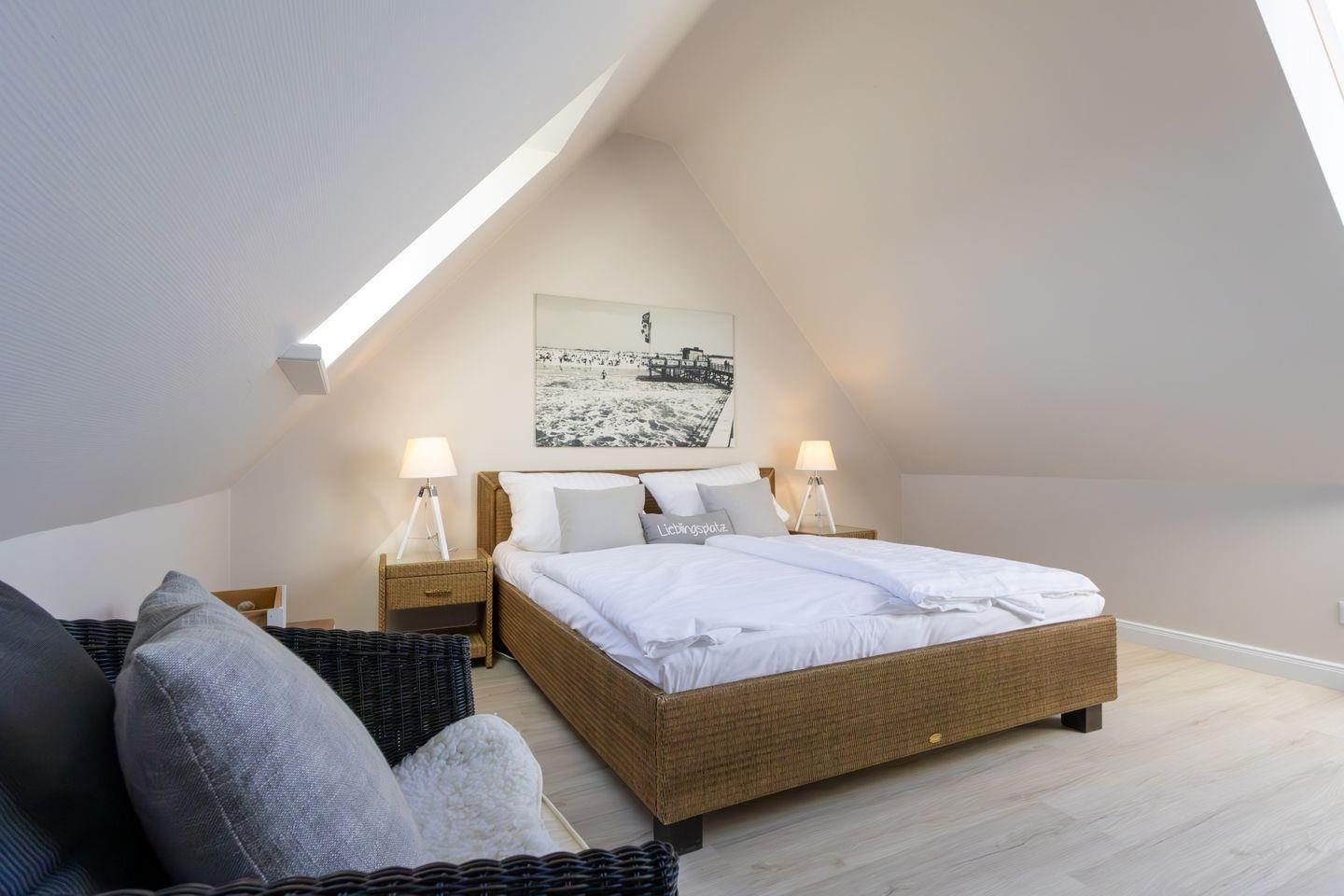 Dachgeschoss: ein Schlafzimmer mit Doppelbett (160 x 200 cm)