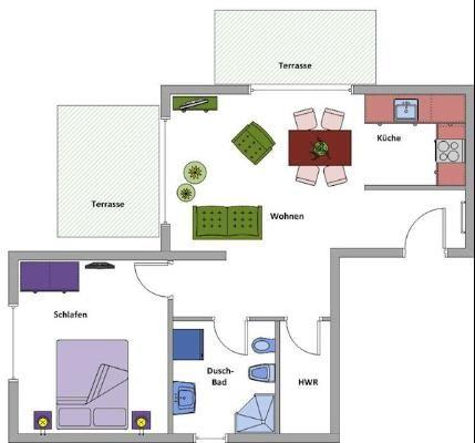 Die Wohnfläche von ca. 55 m² teilt sich wie folgt auf: