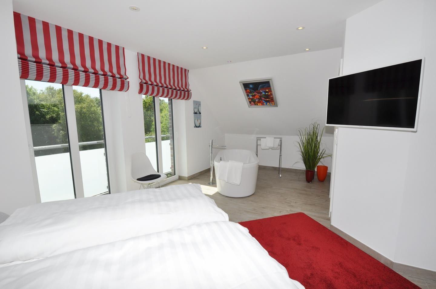Ein besonderer Clou ist die freistehende Badewanne im Schlafzimmer des Dachgeschosses.