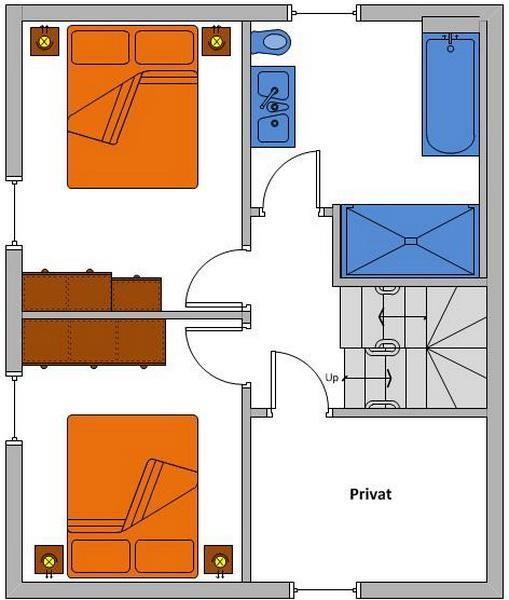 Dachgeschoss: ein Schlafzimmer mit 2 Einzelbetten (je 100 x 200 cm)