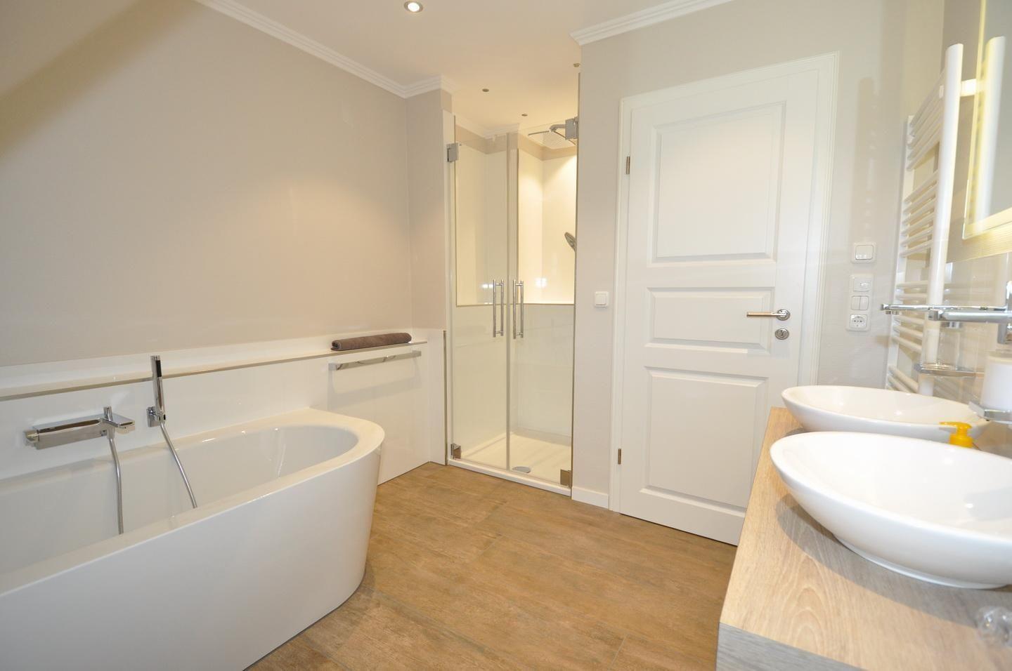 Obergeschoss: 2 Schlafzimmer mit Doppelbett (1x 180 x 200 cm und 1x 160 x 200 cm), ein Wannenbad / WC mit separater Regendusche