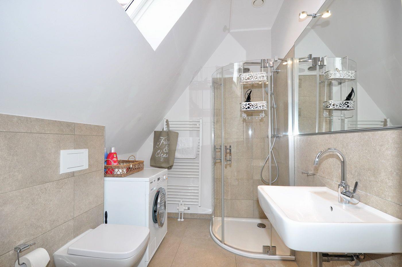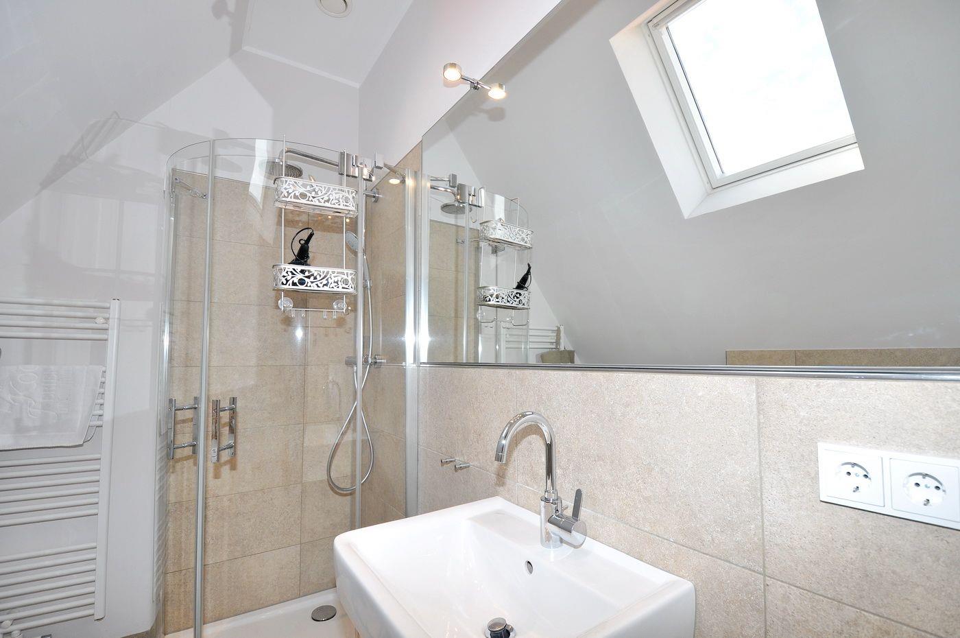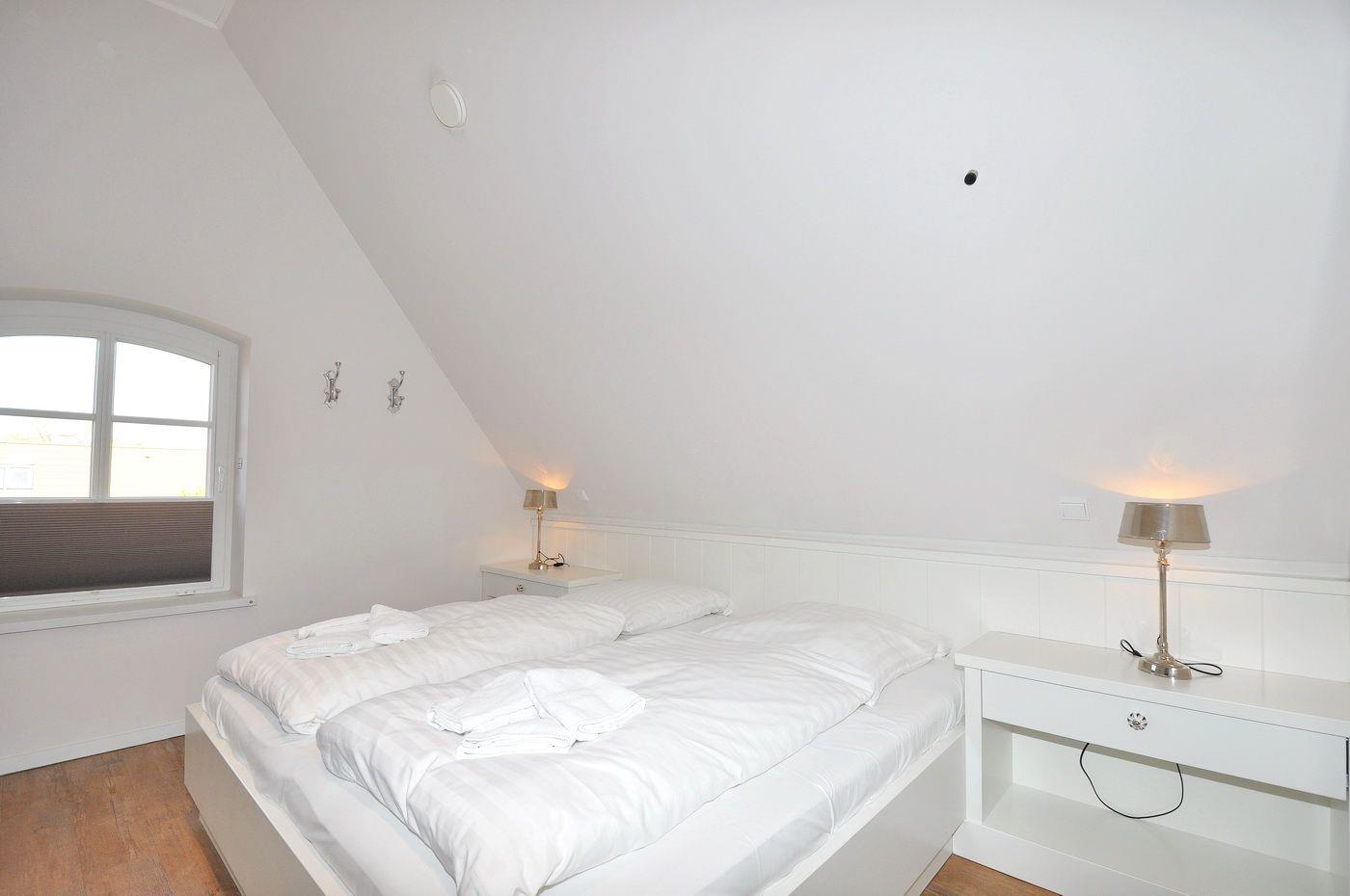 Dachgeschoss: ein Schlafzimmer mit Doppelbett (180 x 200 cm) und angegliedertem Duschbad / WC