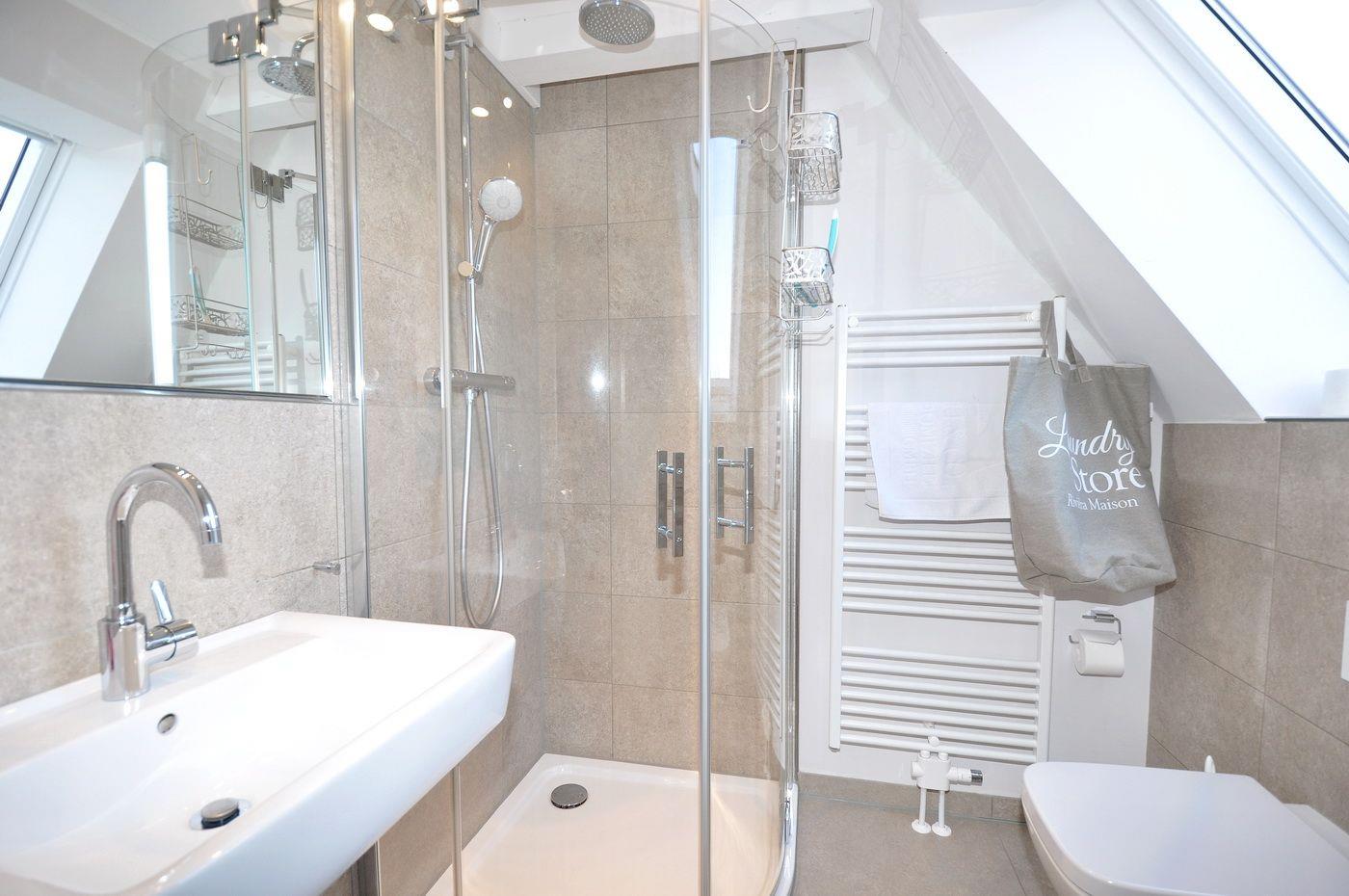 Dachgeschoss: ein Schlafzimmer (180 x 200 cm) mit angegliedertem Duschbad / WC