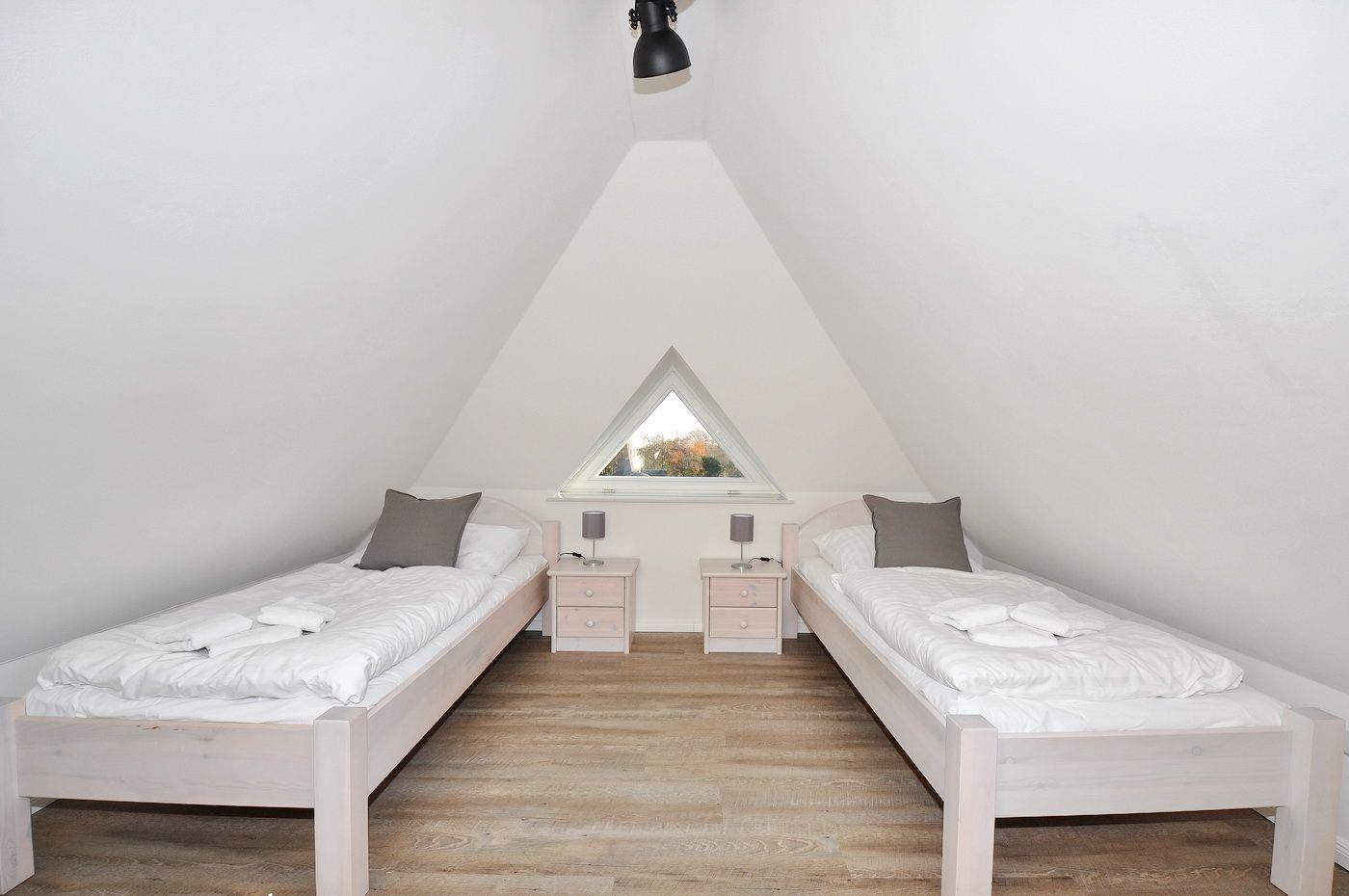 Dachgeschoss: ein Schlafzimmer mit 2 Einzelbetten (je 90 x 200 cm) und TV