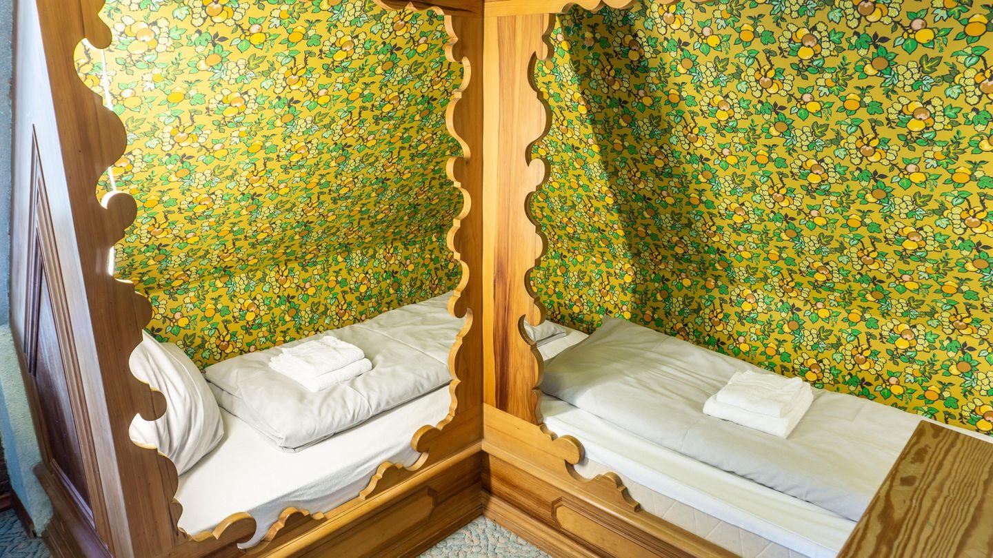 Schlafzimmer mit 2 Alkovenbetten (über Eck, 90 x 200 cm), Kommode