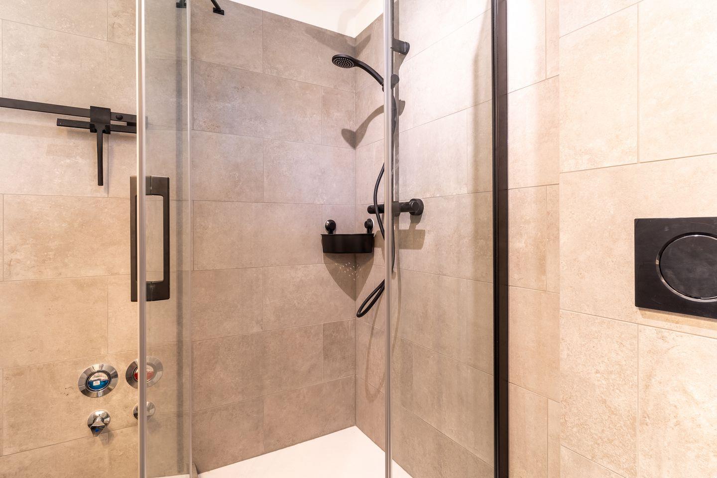 Vom Wohnzimmer gelangen Sie auf eine gemütliche, sonnige Süd Terrasse mit stylischen Gartenmöbeln. An dem Wohnflur mit Garderobe schließt sich ein Duschbad an.
