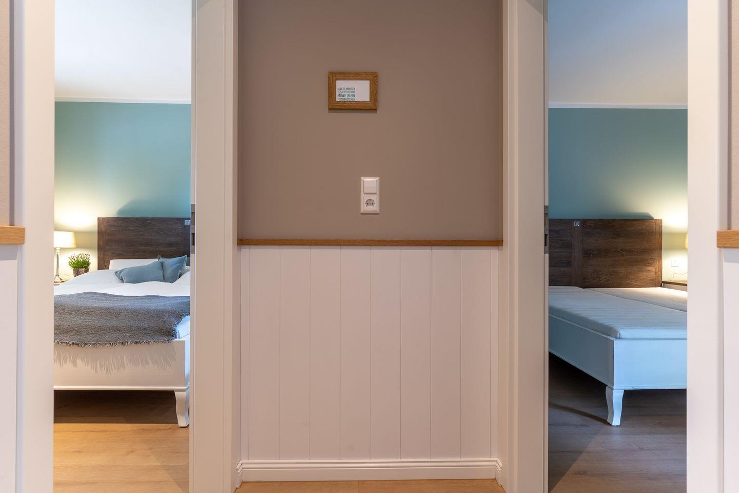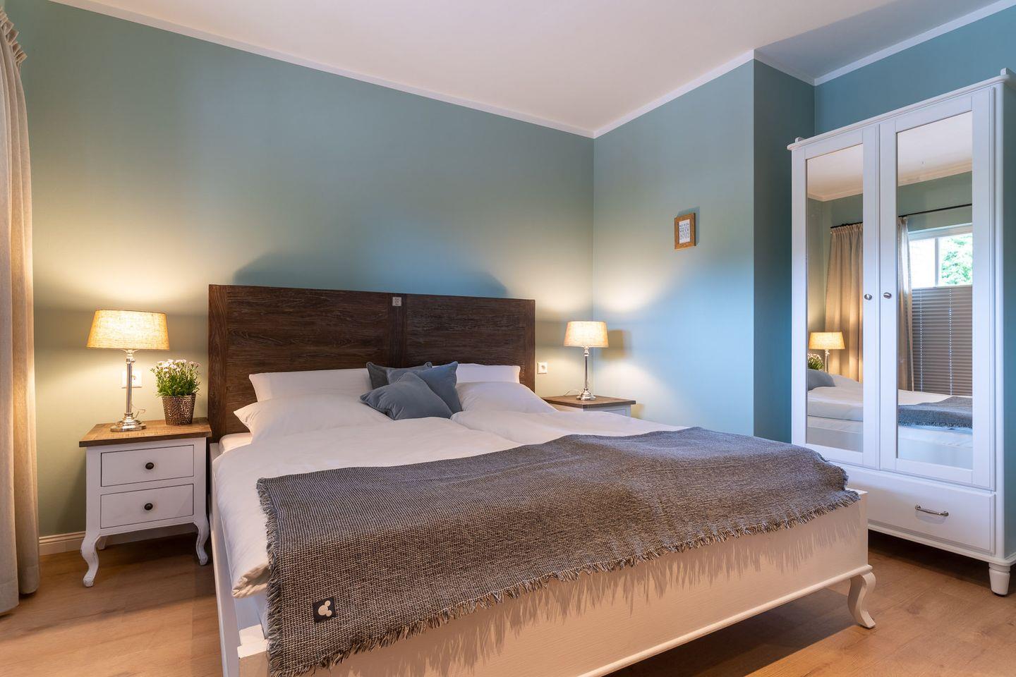 Die beiden Schlafzimmer sind jeweils mit einem Doppelbett ausgestattet. Von einem Schlafzimmer gelangen Sie auf eine weitere gemütliche Terrasse.