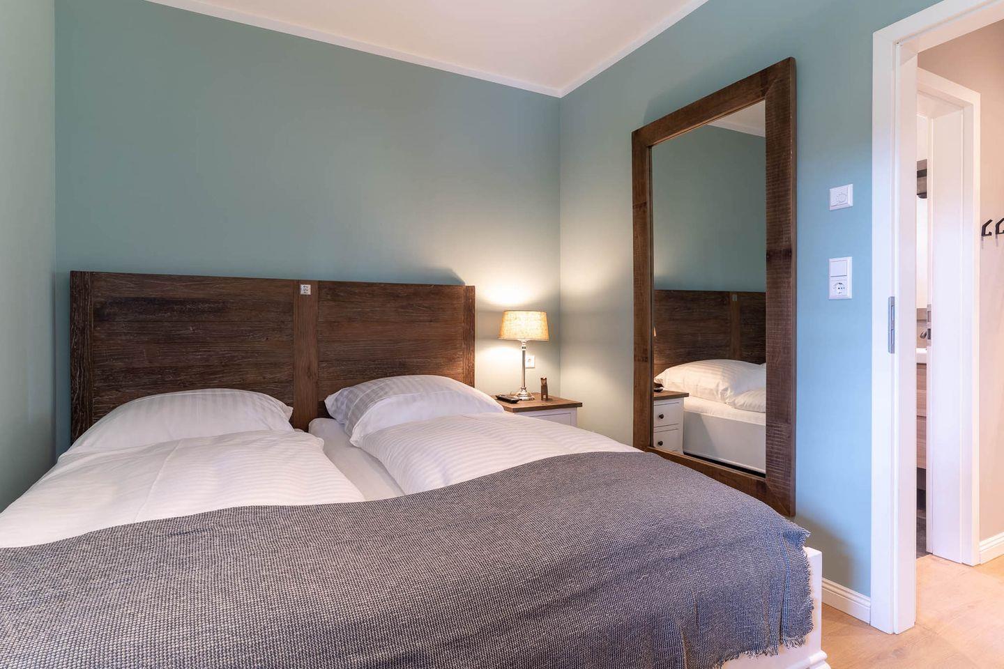 Das gemütliche Schlafzimmer ist mit einem Doppelbett ausgestattet und gewährt Ihnen einen direkten Zugang zur Terrasse.