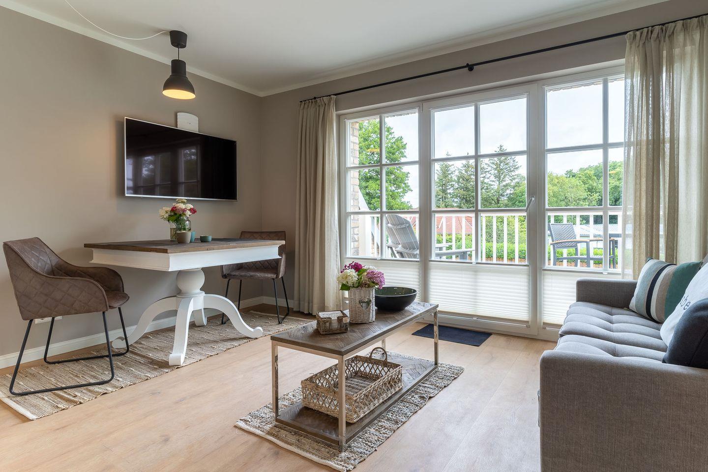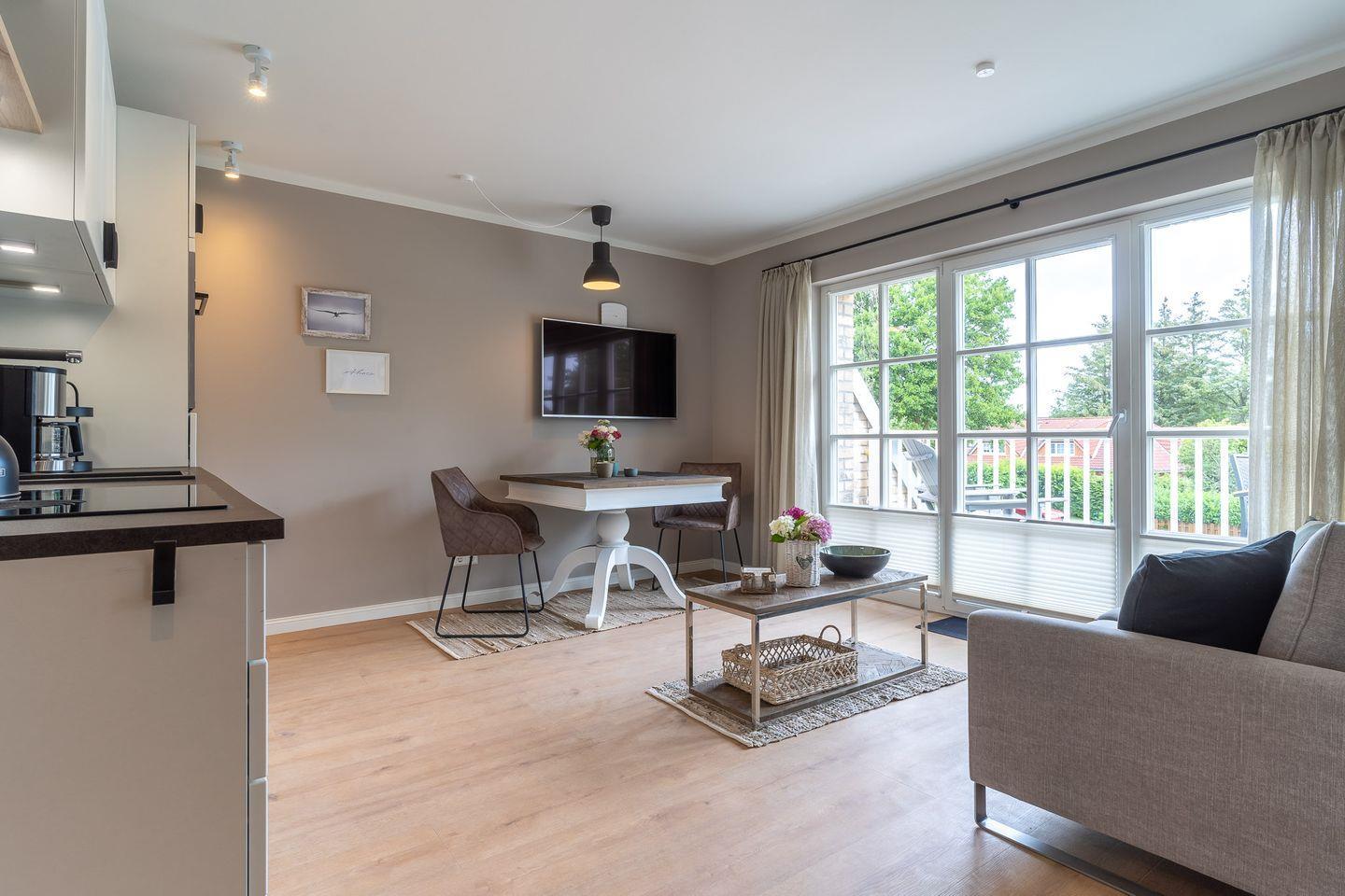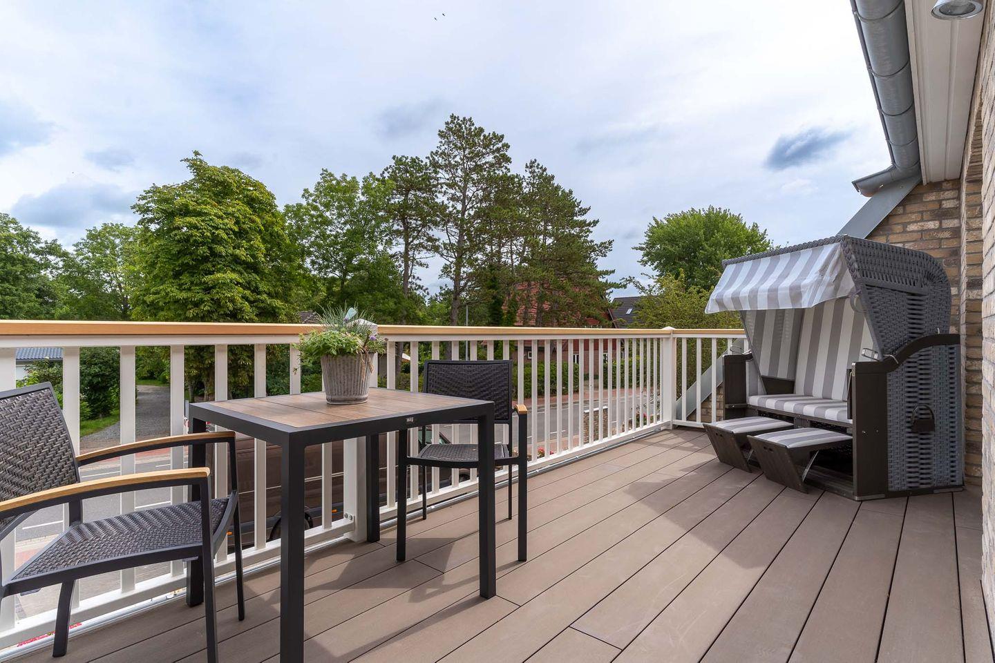 Modernes Luxus-Appartement Ysbert in St. Peter-Ording mit Sauna, Balkon und hochwertiger Ausstattung für erholsamen Urlaub.
