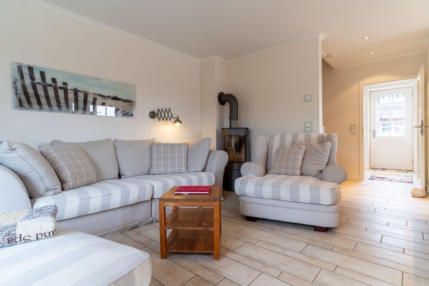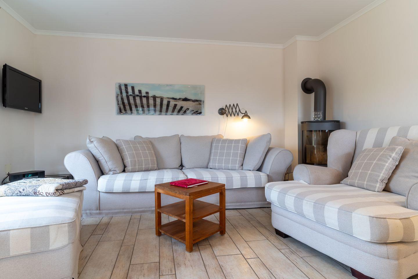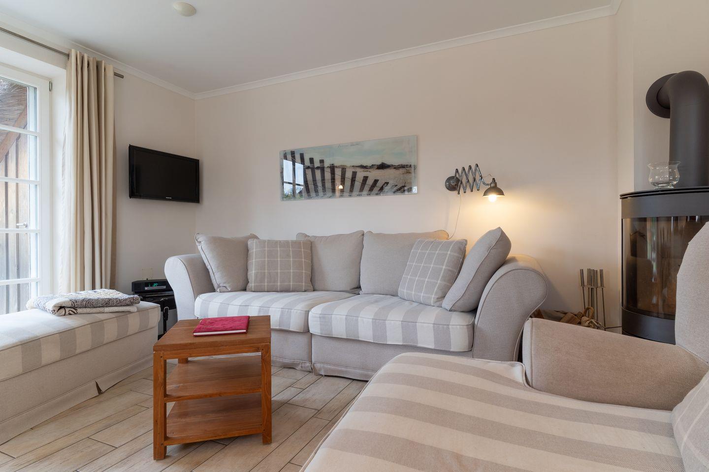 Gemütliche Reetdachhaushälfte in St. Peter-Ording mit Kamin, Terrasse und hochwertiger Ausstattung für traumhaften Urlaub.