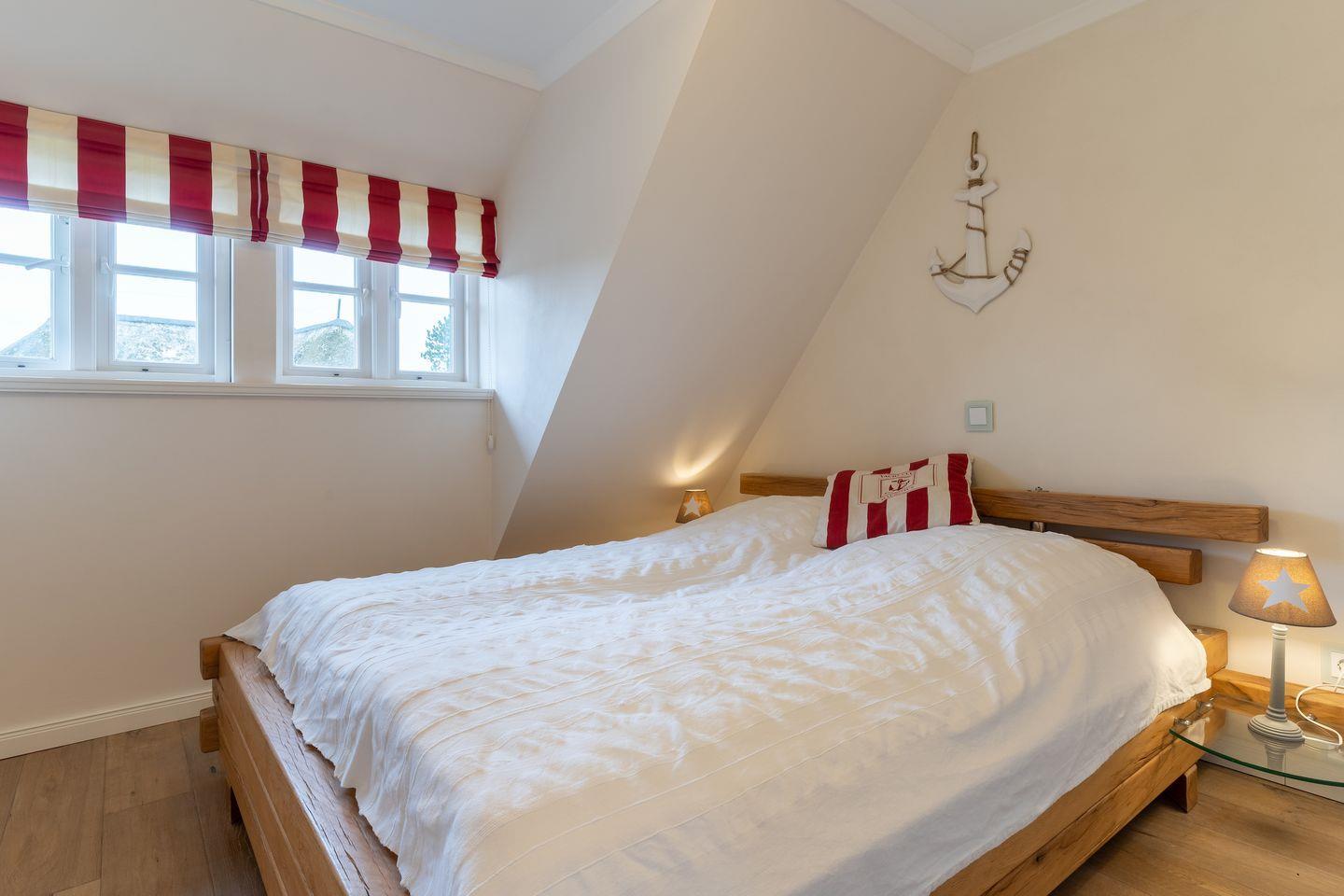 Obergeschoss: ein Schlafzimmer mit Doppelbett, ein Schlafzimmer mit Einzelbett (140 x 200 cm), ein Duschbad / WC mit Walk-In Dusche