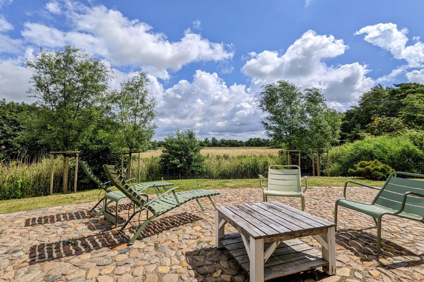 Bei gutem Wetter lassen sich die ersten Sonnenstrahlen des Tages auch auf einer der zwei möblierten Terrassen genießen. Der angrenzende Garten mit Teich und zusätzlichen Sitzgelegenheiten ist ebenfalls liebevoll gestaltet.