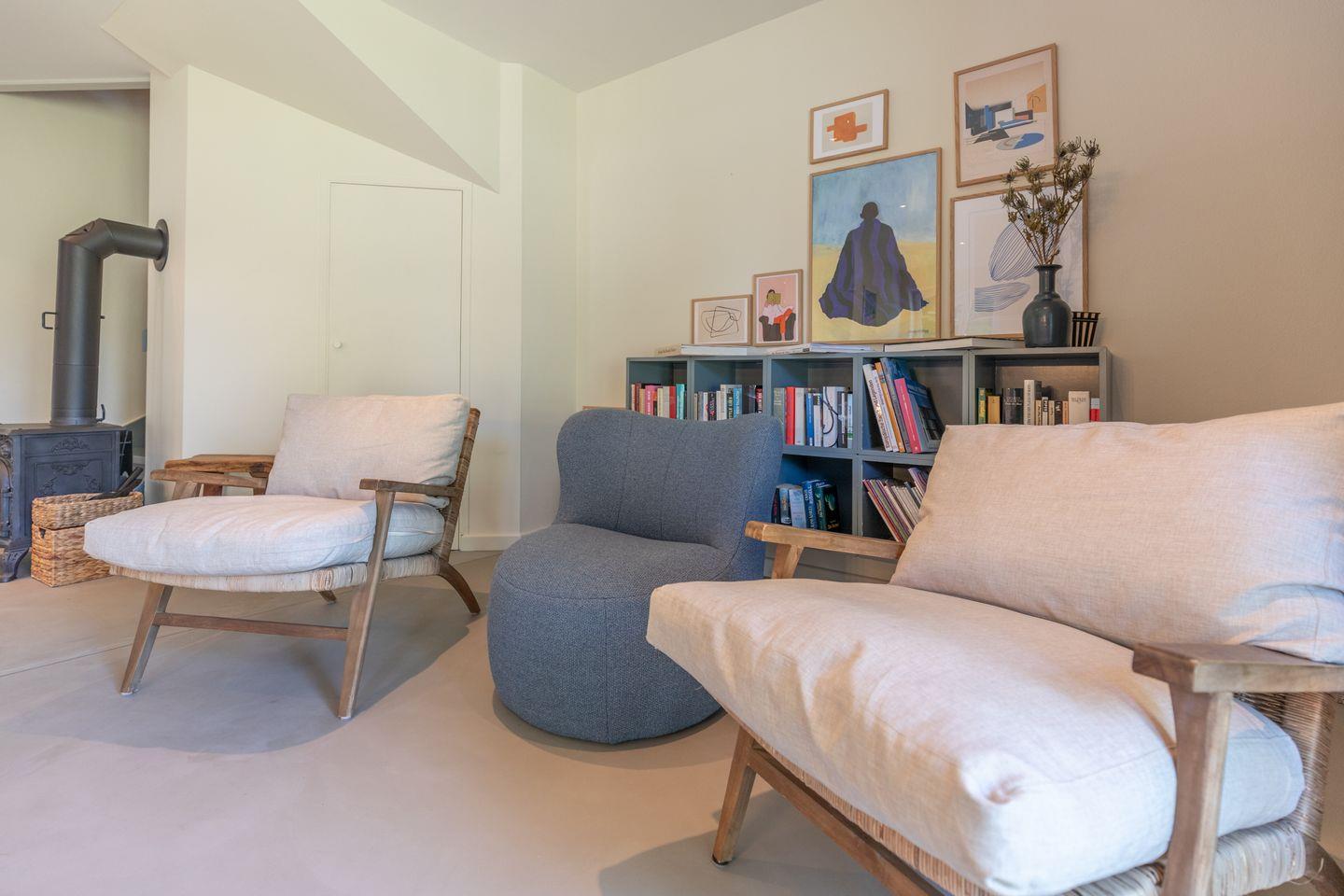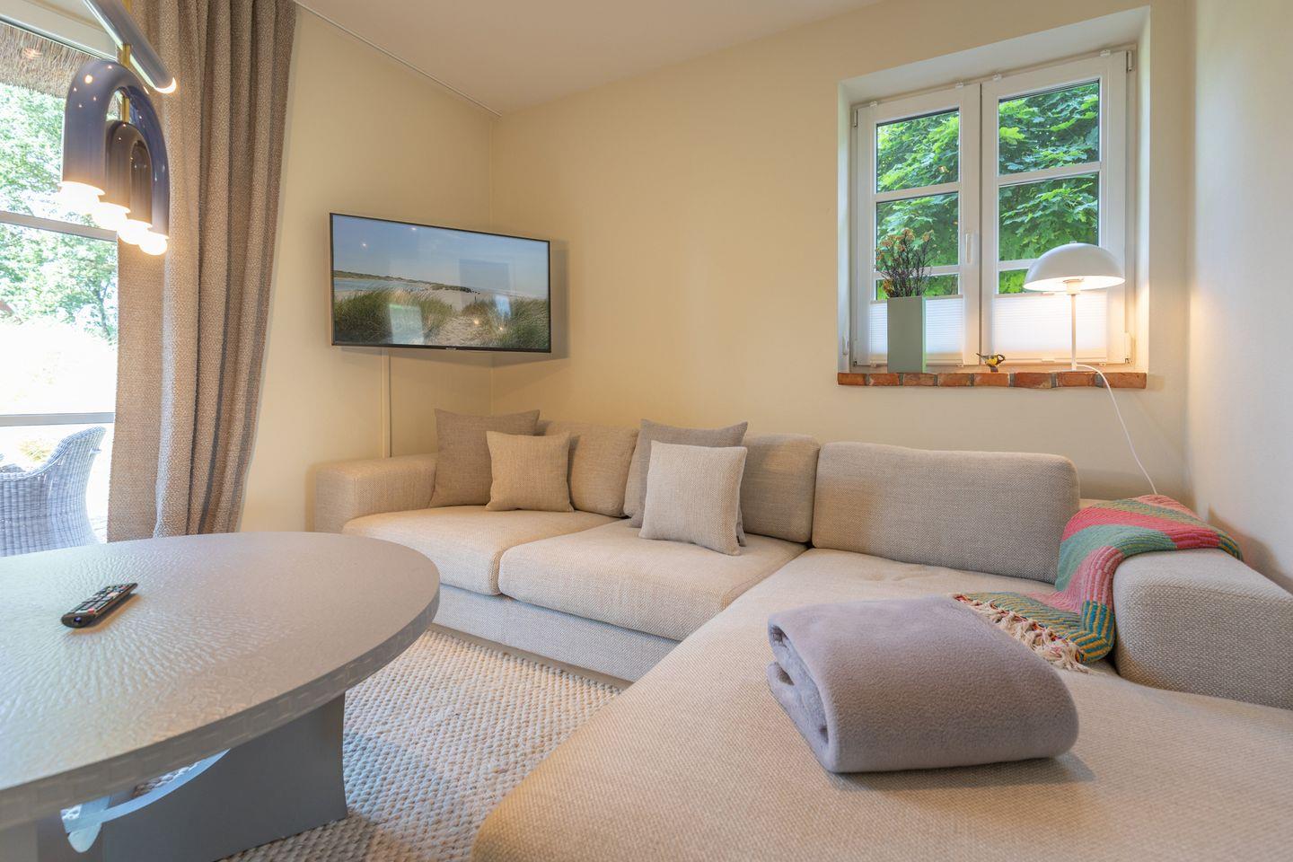 Nach einem ereignisreichen Urlaubstag entspannen Sie sich im Wohnbereich mit Kaminofen auf der Sofalandschaft und dem Ohrensessel bei einem guten Buch oder schauen einen Film.