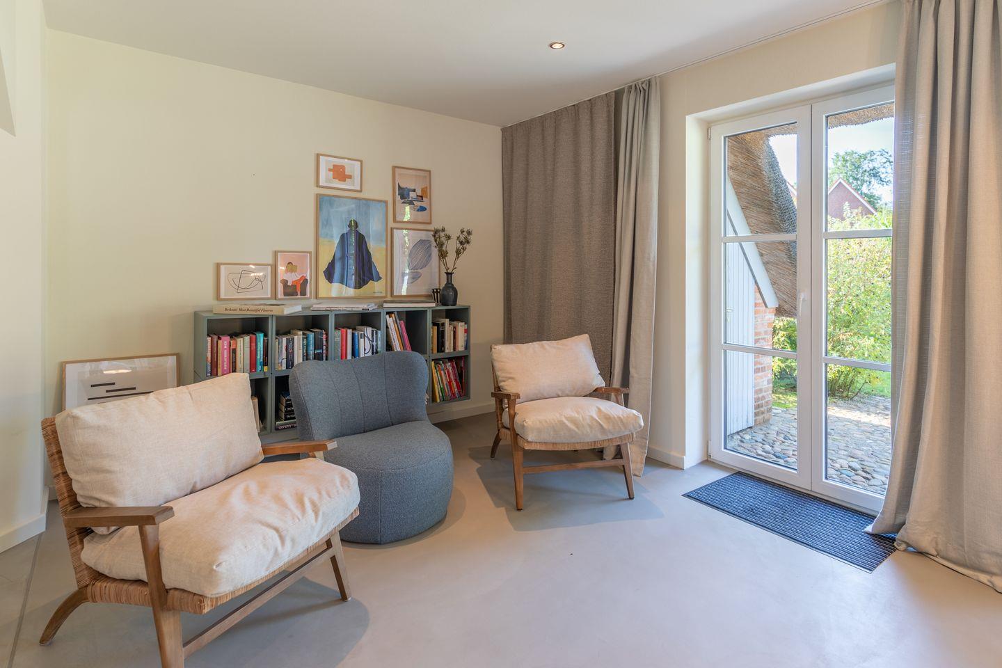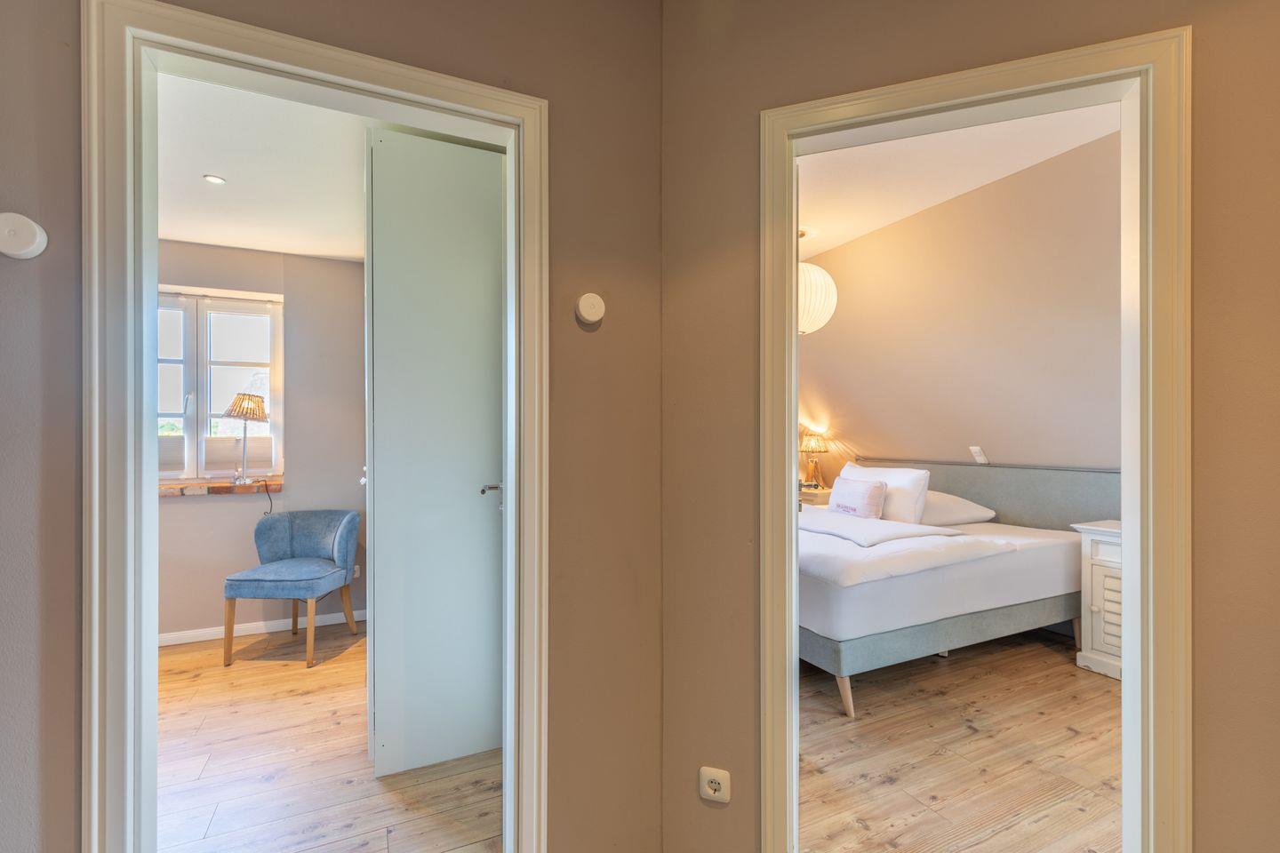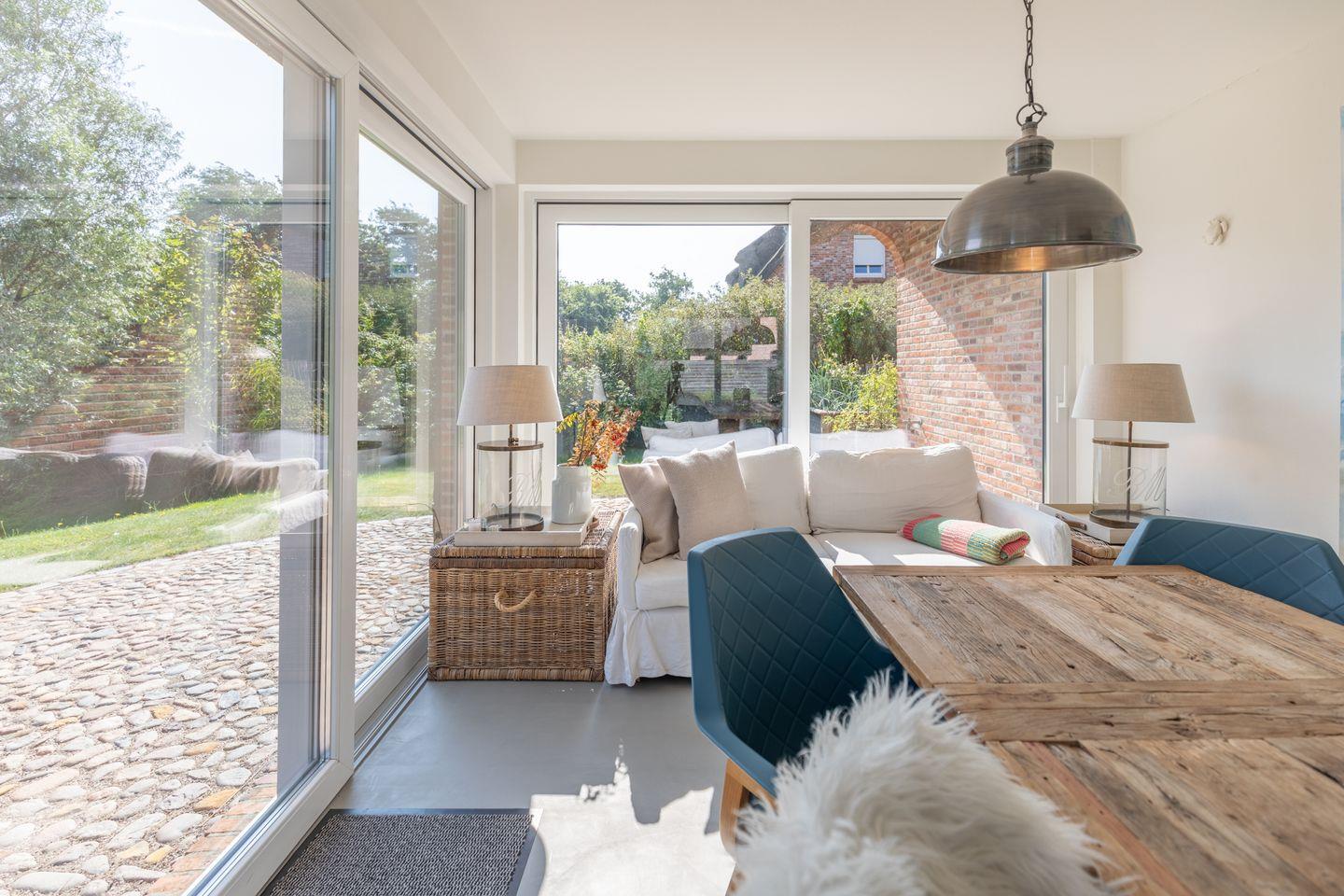 Sollten Sie mit mehr als 6 Personen verreisen wollen, können Sie die angrenzende Doppelhaushälfte "Kleine Lachmöwe" (Verfügbarkeit vorausgesetzt) für bis zu 4 Personen gerne dazu buchen: In diesem Fall wird der Zugang aus der "Kleinen Lachmöwe" auf die Dachterrasse des Hauses geöffnet und so beide DHH über die gemeinschaftlich nutzbare Dachterrasse miteinander verbunden.