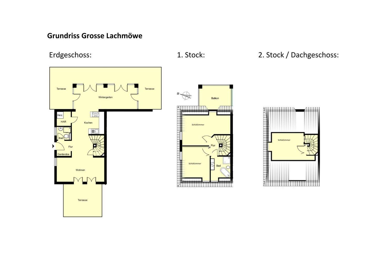 Die Große Lachmöwe mit 130qm auf drei Ebenen eignet sich hervorragend für Familien oder Gruppen mit bis zu 6 Personen.