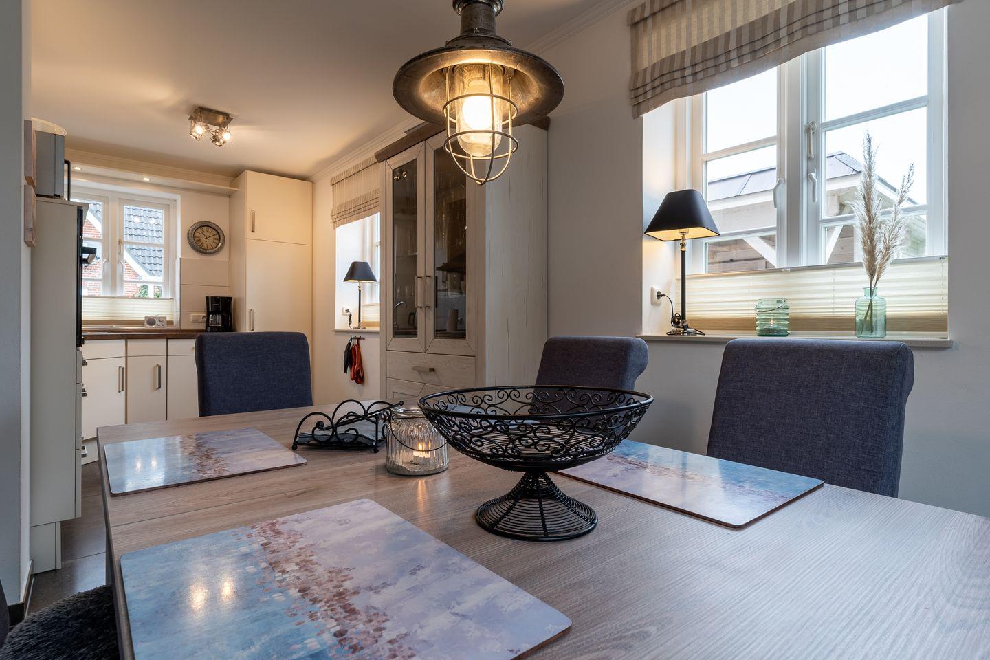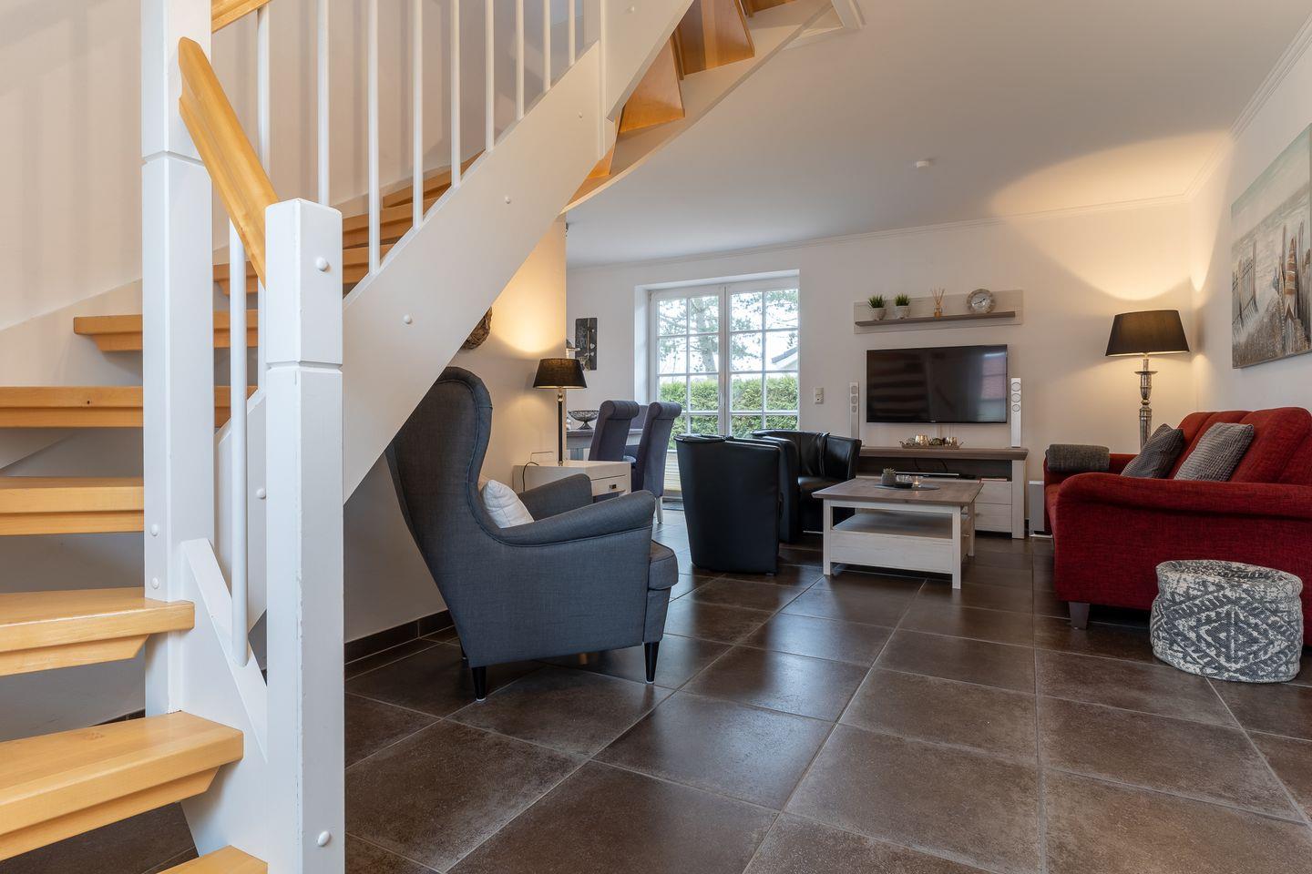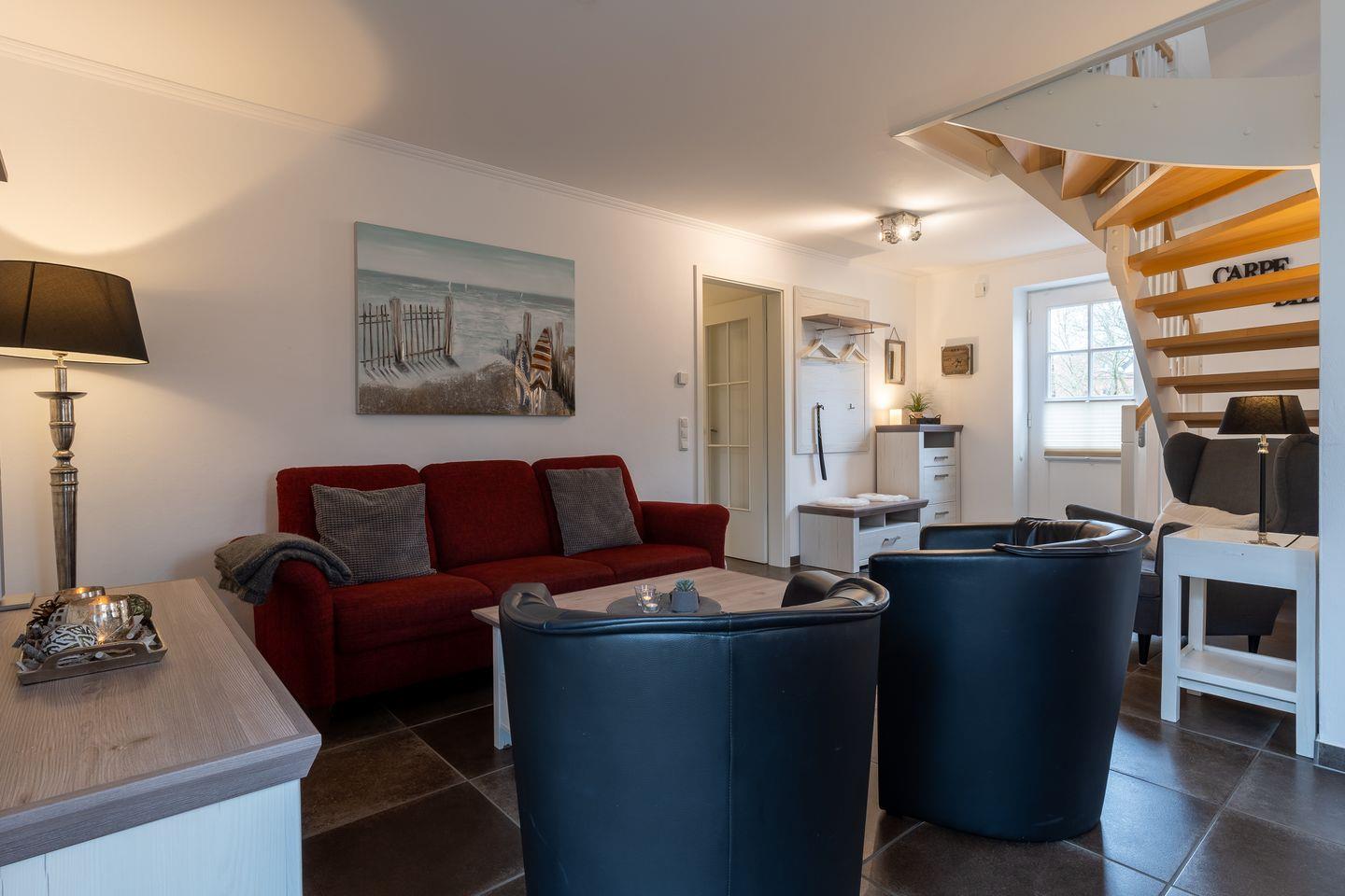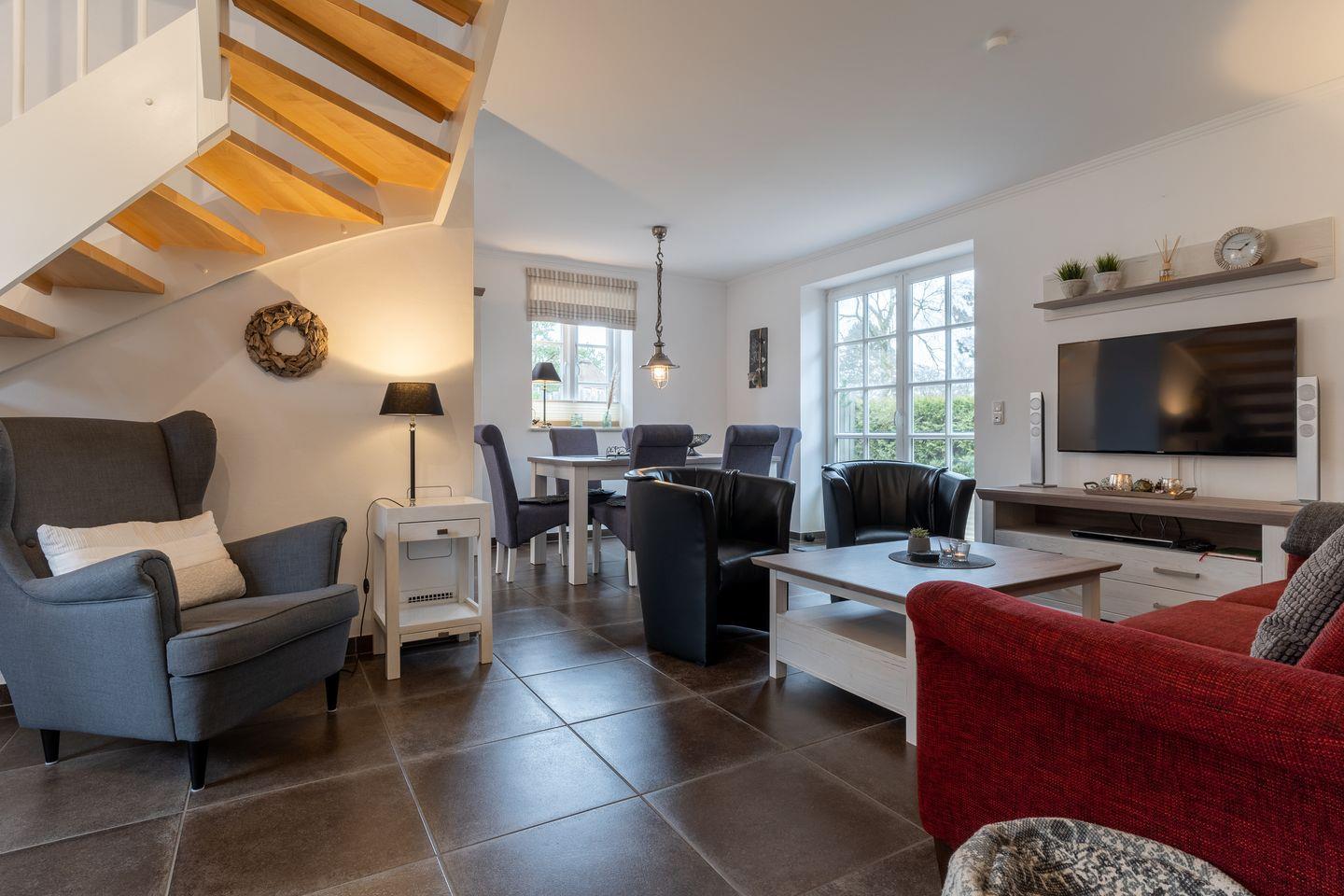 Die Haushälfte unter Reet bietet viel Platz für 6 Personen und besticht durch seine Gemütlichkeit. Es verbindet maritime Elemente mit Landhausstil und erhält so seinen ganz eigenen besonderen Charme.