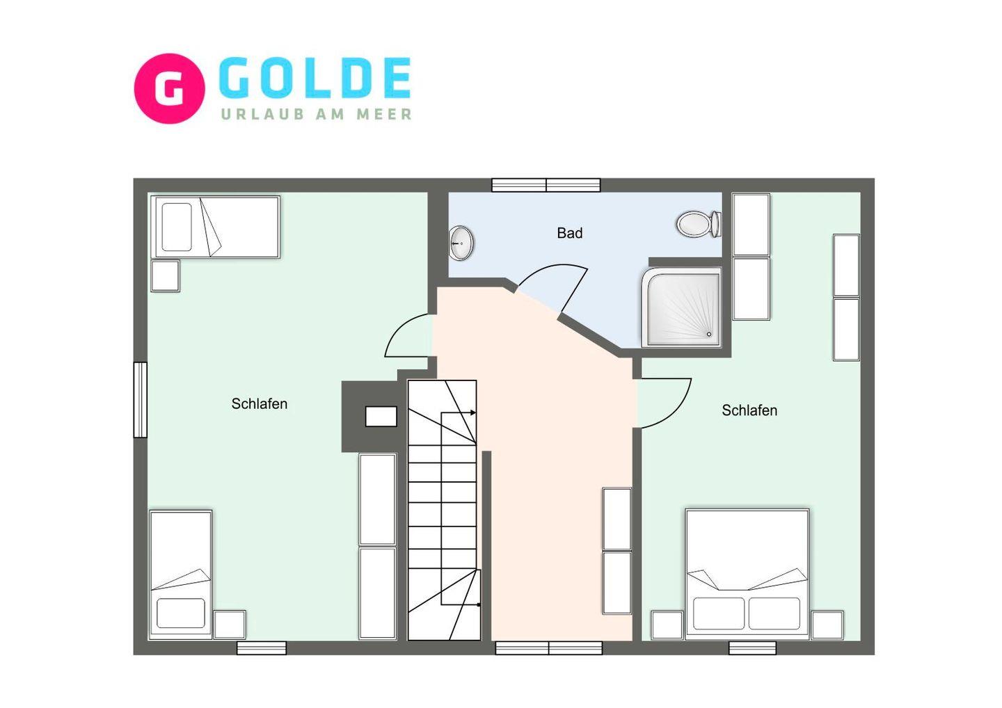 Die Wohnfläche von ca. 100m² verteilt sich auf zwei Ebenen: Im Erdgeschoss befindet sich der Wohnraum mit einem gemütlichen Essbereich und Zugang zur Terrasse. Die Wohnküche ist mit allen wichtigen Geräten voll ausgestattet und lädt zum gemeinsamen Kochen ein. Im Erdgeschoss ist ebenso ein Doppelschlafzimmer mit Kleiderschrank, sowie ein Duschbad mit WC. Im Empfangsgereicht ist ein Flur mit Garderobe, von hier aus gelangt man in das Obergeschoss. Hier befinden sich 2 Doppelschlafzimmer, eines mit Doppelbett und das Andere mit 2 Einzelbetten. Große Fenster sorgen für viel Licht. Außerdem ist im Obergeschoss ein geräumiges Duschbad mit WC.
