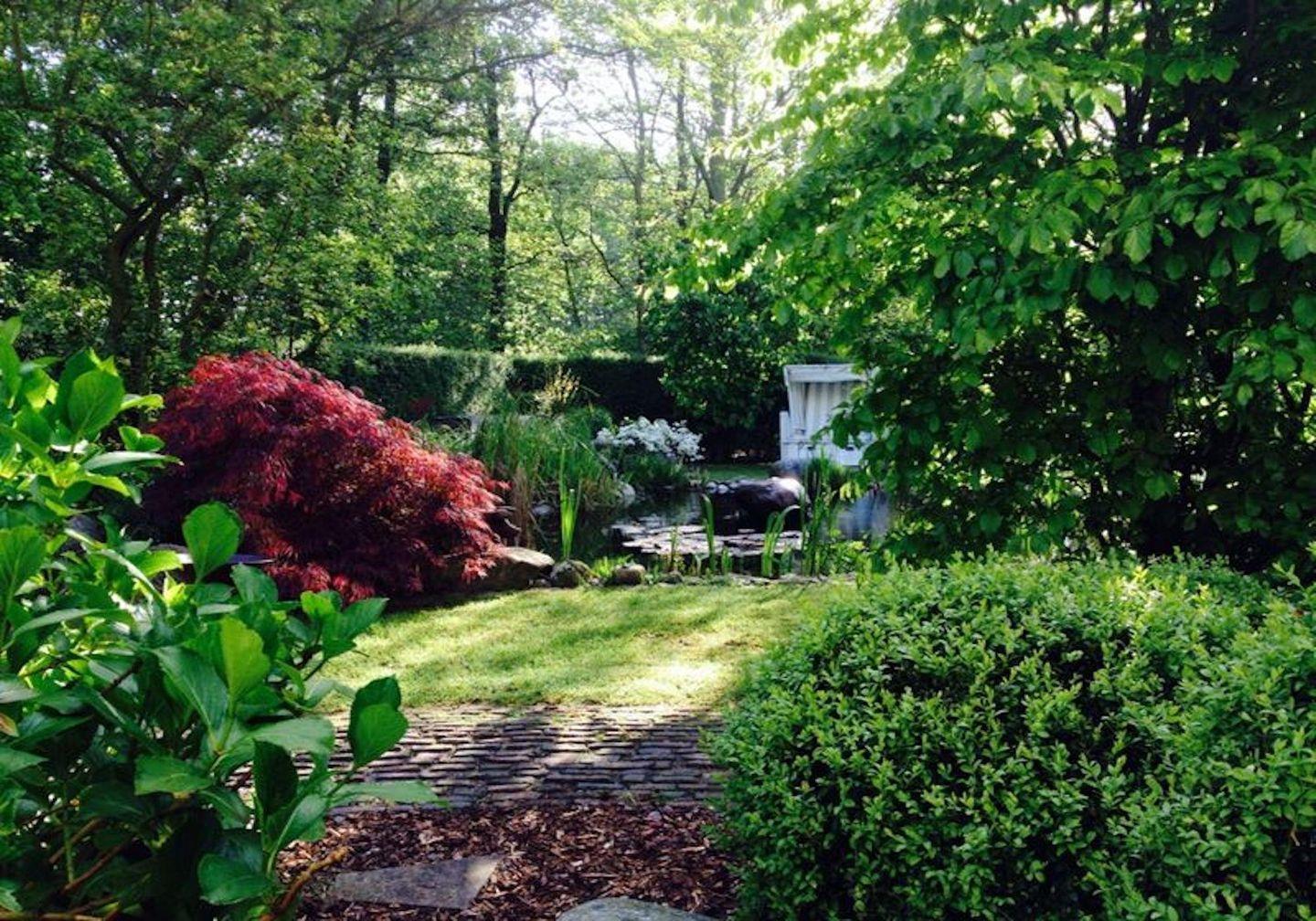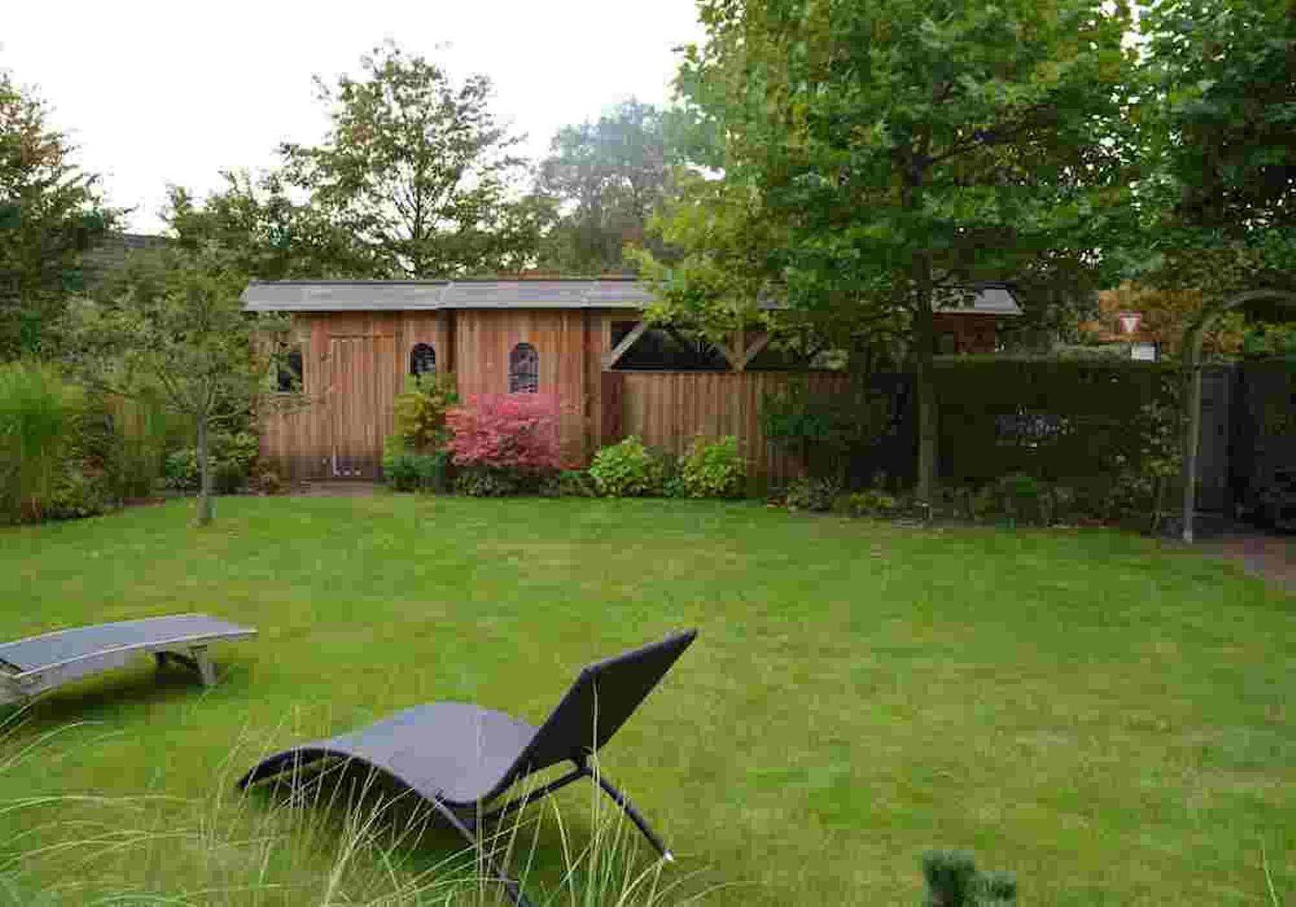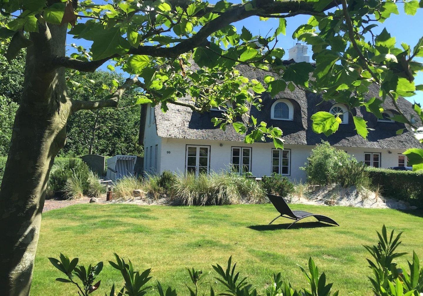 Der schöne großzügige Garten (ca. 1.000 m²) empfängt Sie mit altem Baumbestand, Dünenbeeten, großer Rasenfläche und einer großzügigen Terrasse.