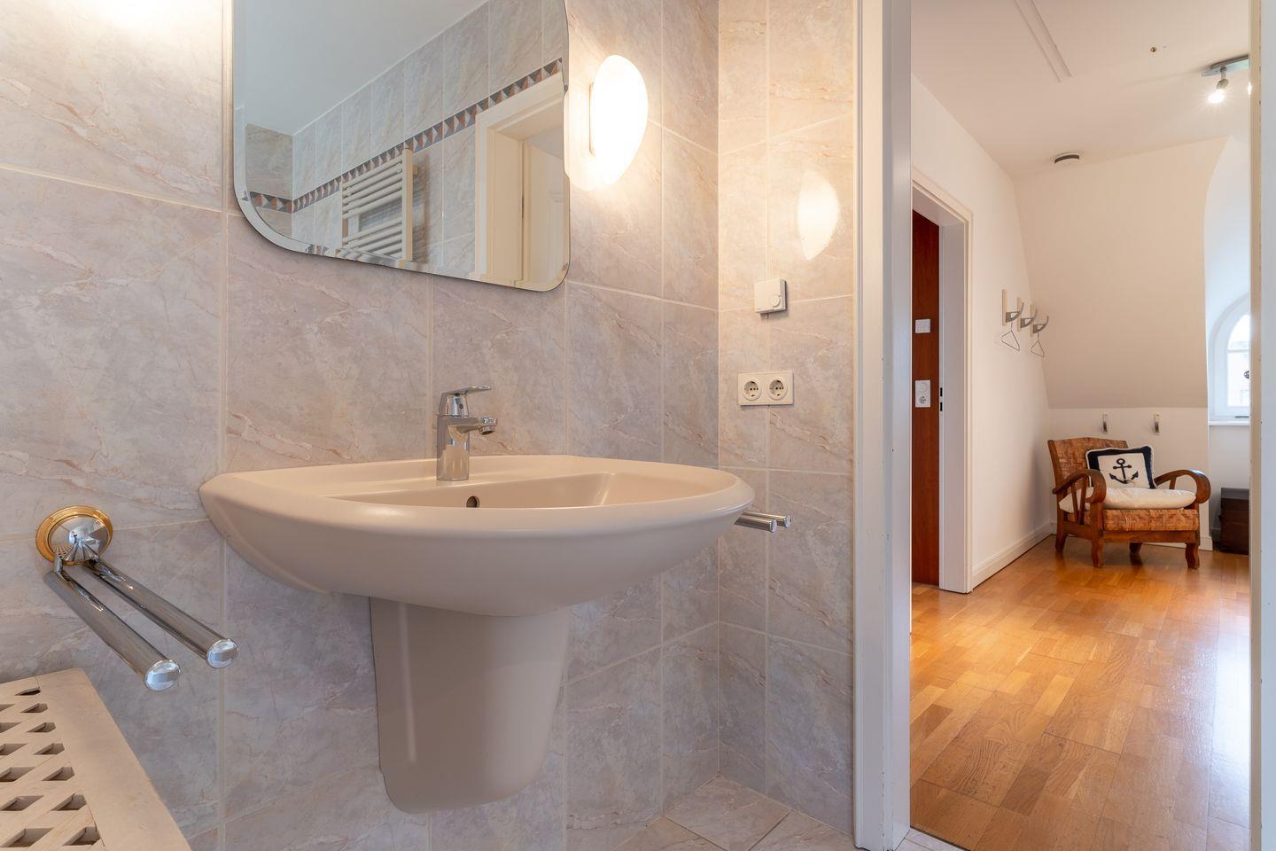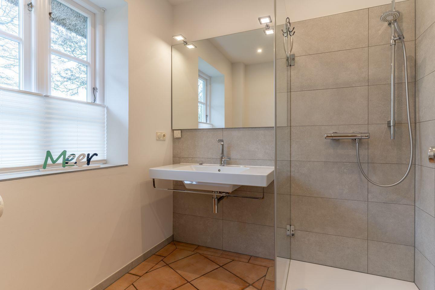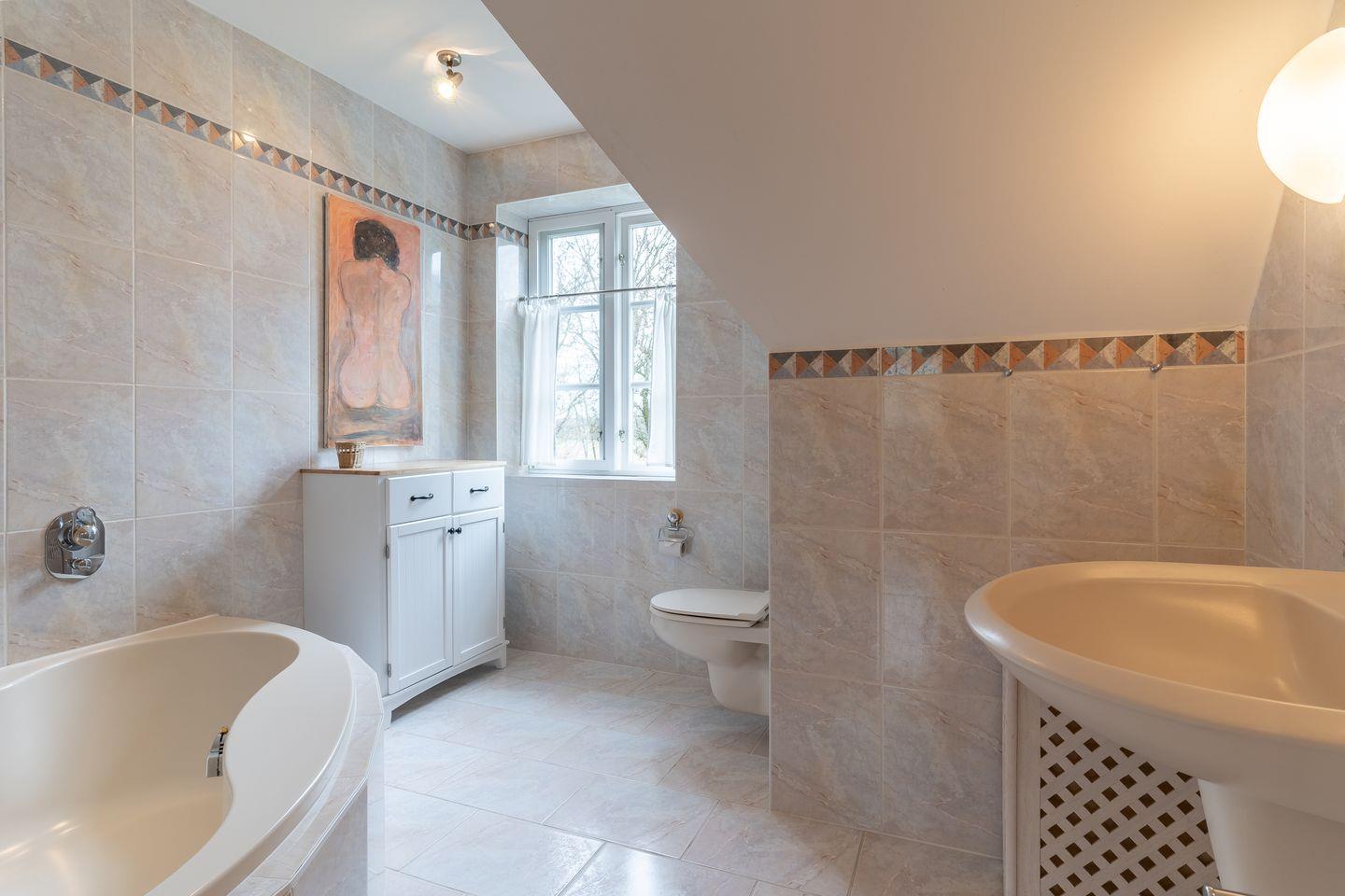 Obergeschoss: zwei gemütliche Schlafzimmer (1 x Doppelbett 180 x 200 cm, 2x Einzelbetten 90 x 200 cm), geräumiges Badezimmer mit Eckbadewanne und Handtuchtrockner.