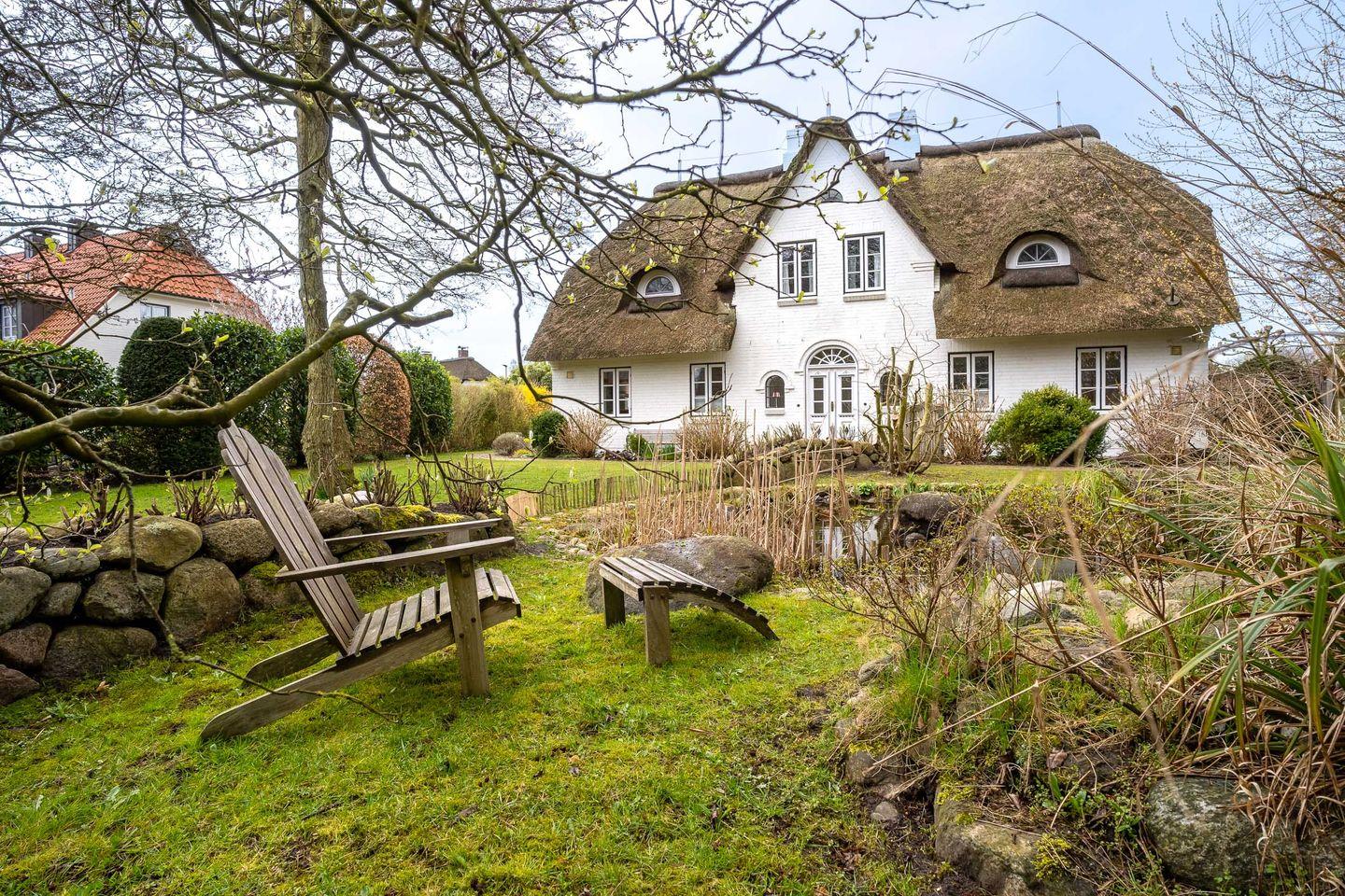 Der schöne großzügige Garten (ca. 1.000 m²) empfängt Sie mit altem Baumbestand, Dünenbeeten, großer Rasenfläche und einer großzügigen Terrasse.