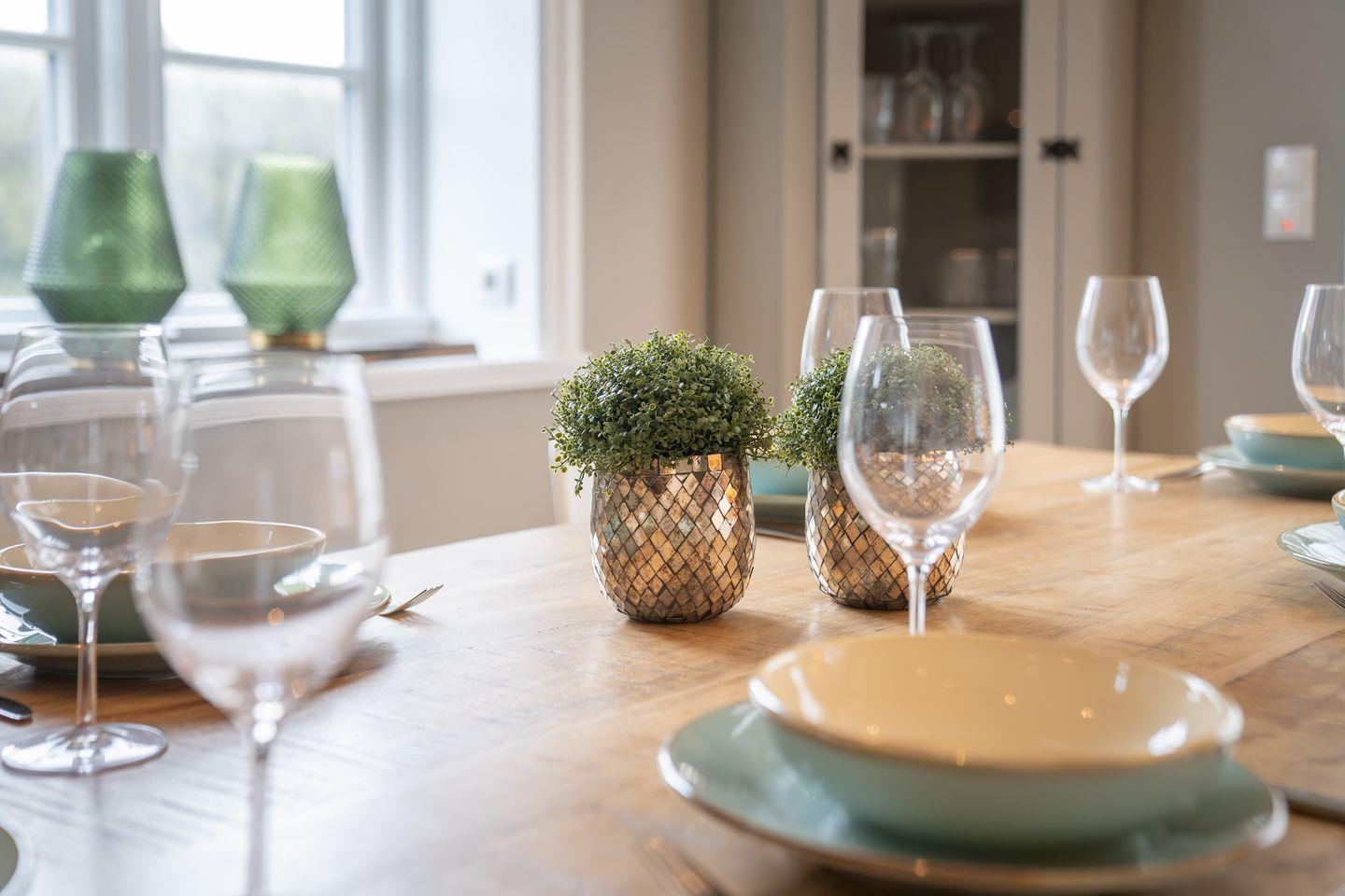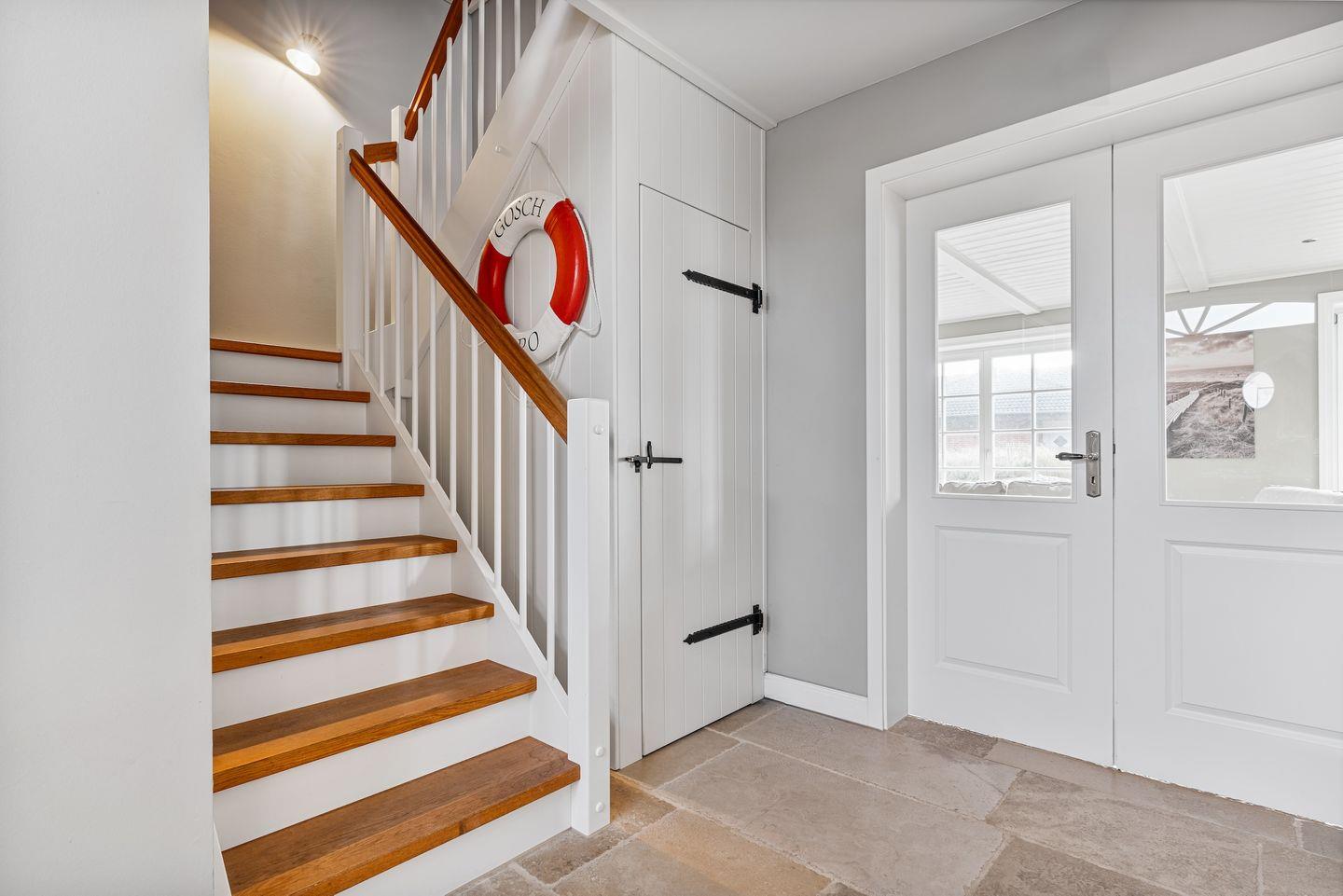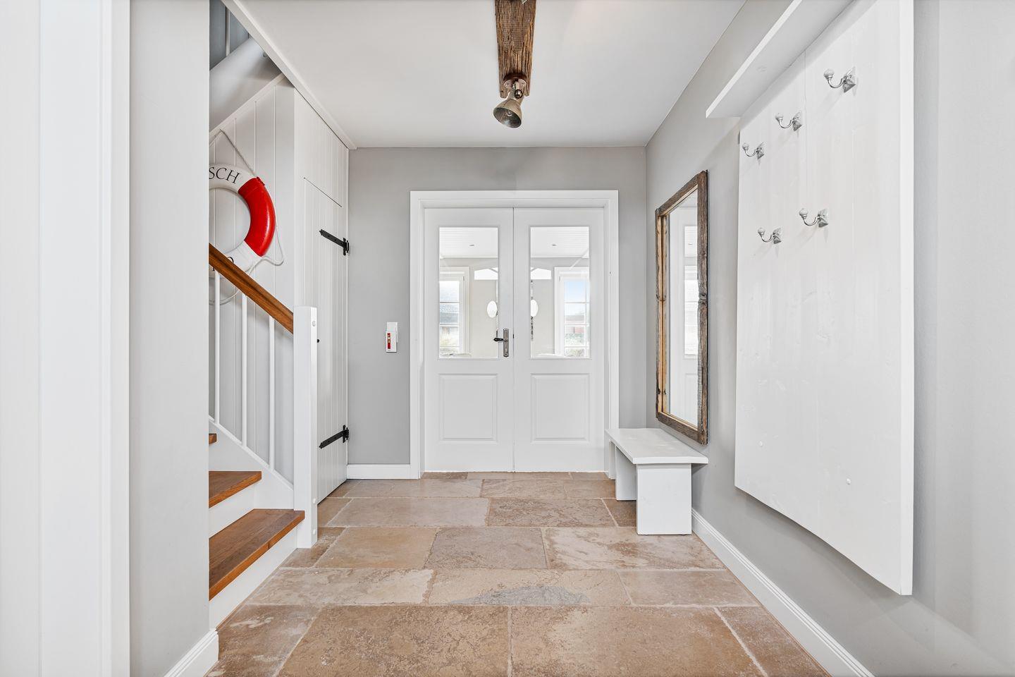 Die luxuriöse Haushälfte unter Reet verfügt über ca. 105 m² Wohnfläche und bietet Platz für 6 Personen. Im Erdgeschoss befindet sich der lichtdurchflutete Wohnraum mit TV, Kamin, einer offenen Küche sowie einem stilvollen Essbereich. Die Wohnräume sind mit wunderschönen Möbeln ausgestattet. Die Küche verfügt über hochwertige Elektrogeräte. An den Wohnbereich schließen sich ein Flur mit ein Hauswirtschaftsraum und ein Duschbad an. Das gesamte Erdgeschoss verfügt über geschmackvolle Natursteinfliesen, die über eine Fußbodenheizung beheizt werden können.