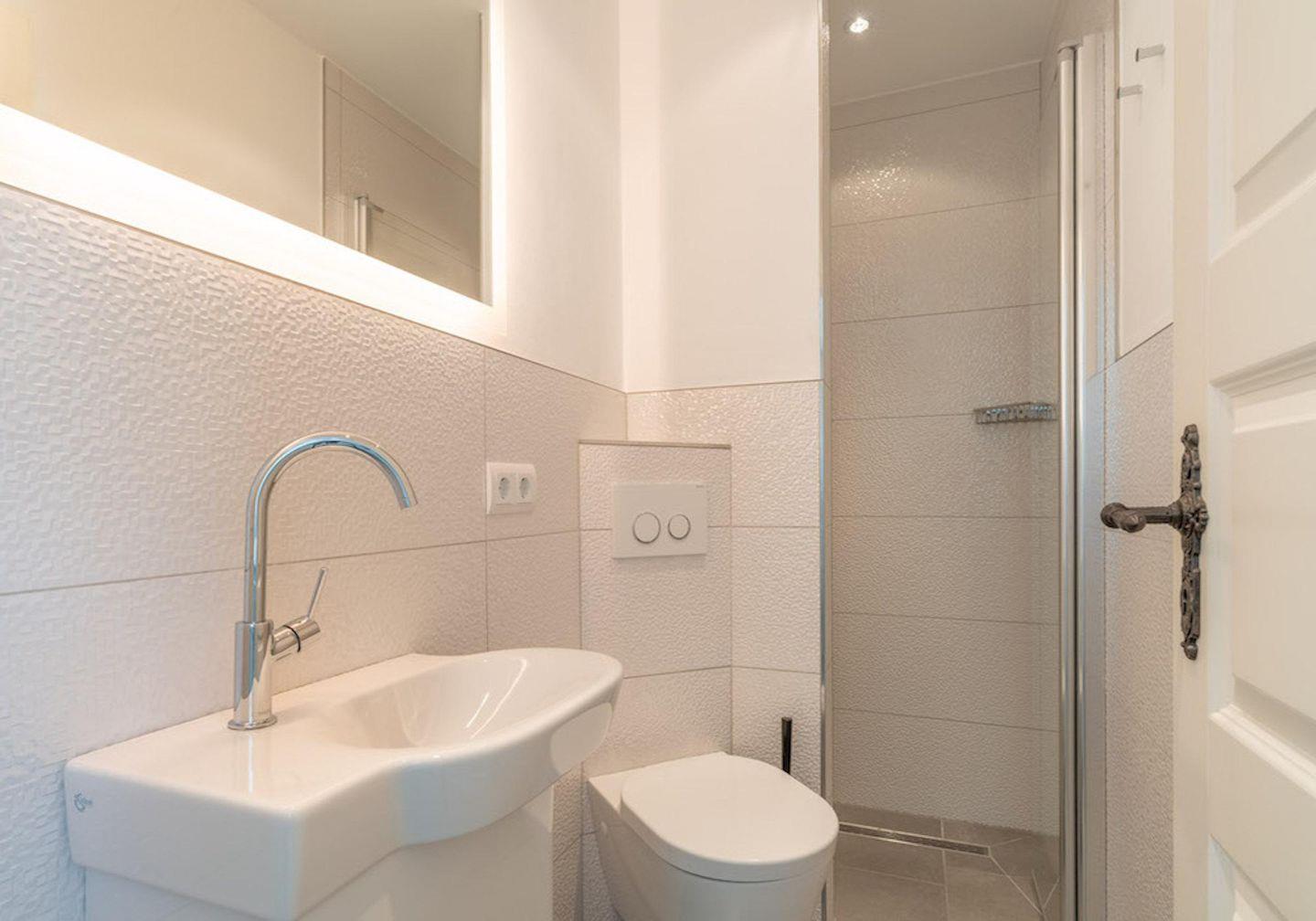 Einbauschränke gewähren Ihnen hinreichend Ablageflächen. Darüber hinaus befindet sich im Obergeschoss ein weiteres, geräumiges Bad mit Dusche und großer Eckbadewanne.