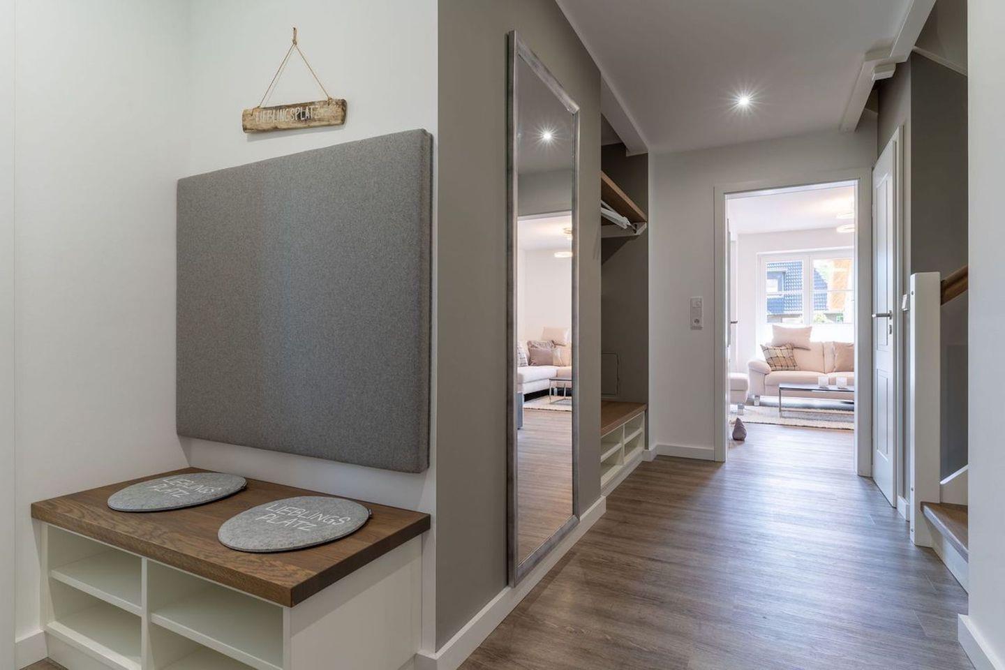 An den Wohnbereich schließen sich ein Flur, ein Duschbad mit einer Infrarot-Wärmekabine sowie ein Abstellraum an.