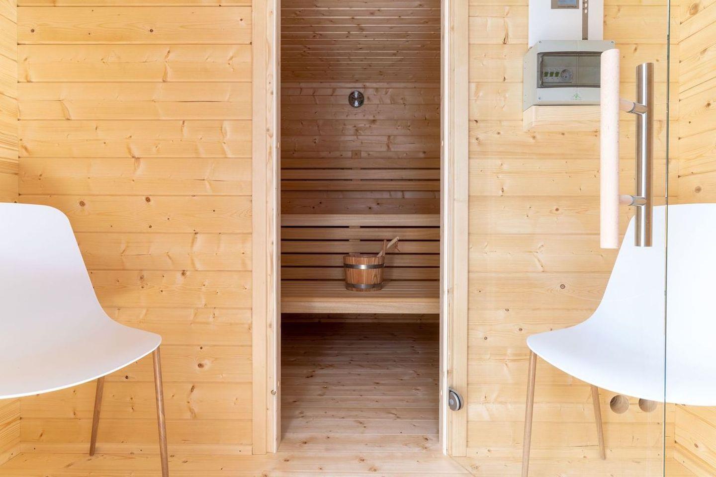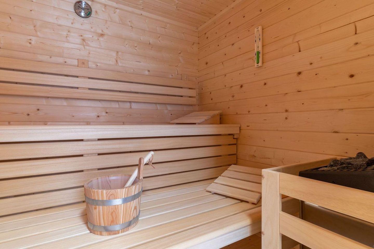 Für zusätzliche Entspannung sorgt eine großzügige Gartensauna.