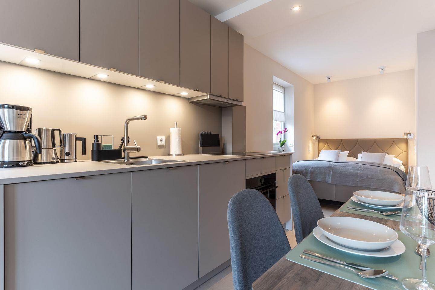 Das großzügige Studio bietet Platz für 2 Personen und verfügt über eine komplett ausgestattete Küche, ein gemütliches Sofa mit TV mit Soundsystem, ein Doppelbett, einen großen Kleiderschrank, Plissees an allen Fenstern und WLAN mit 250 MBits. Auf dem Hochwertigen 43´Samsung TV können Sie sich für die Zeit Ihres Aufenthalts Ihr Netflix oder Disney sowie Amazon Account selbst per Barcode einrichten. Die Küche ist mit modernen Geräten ausgestattet, ein Induktionsherd und ein elektronisches Backofen/Mikrowellen Gerät sind integriert und lassen jedes Gericht perfekt kredenzen.