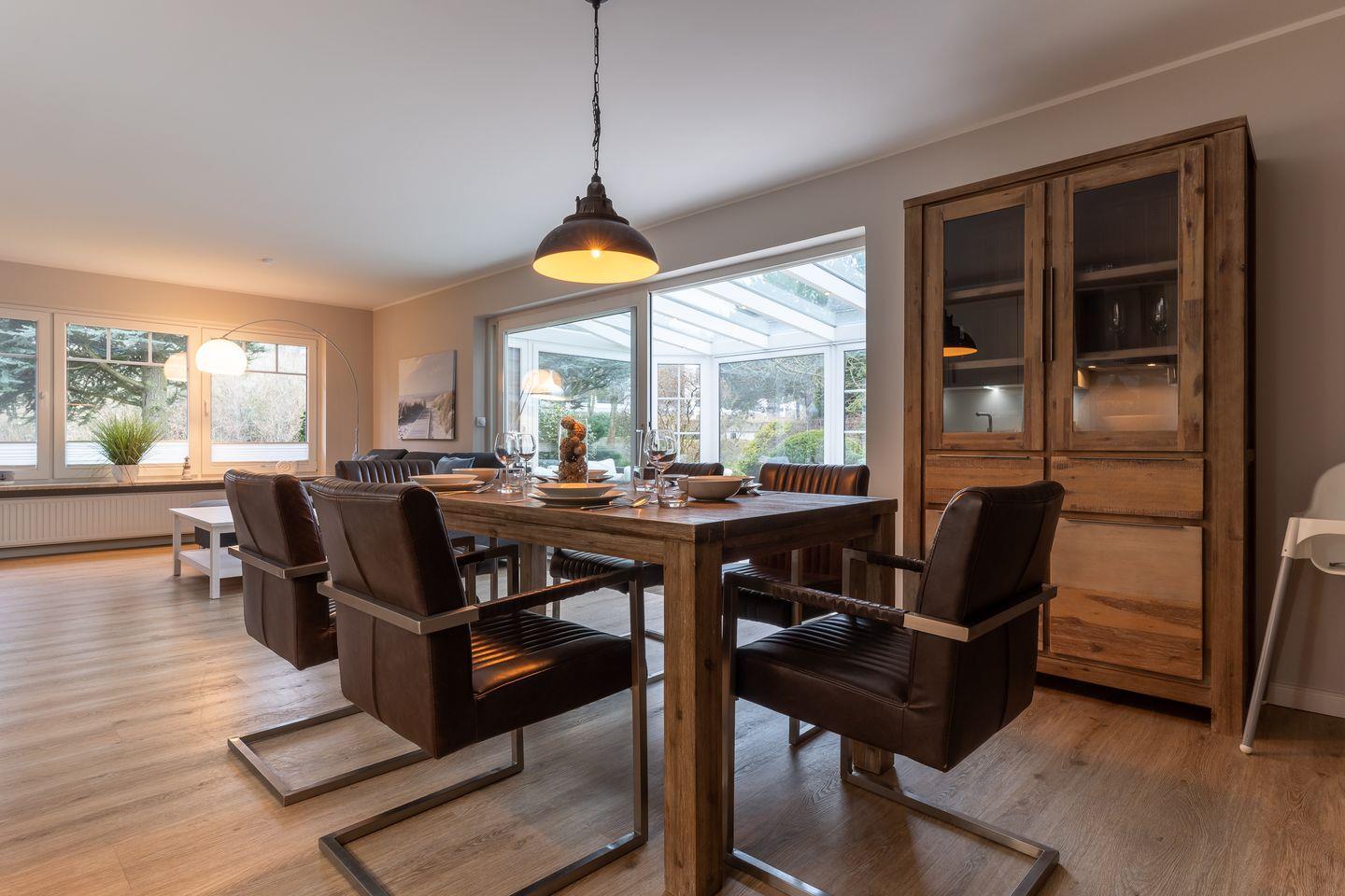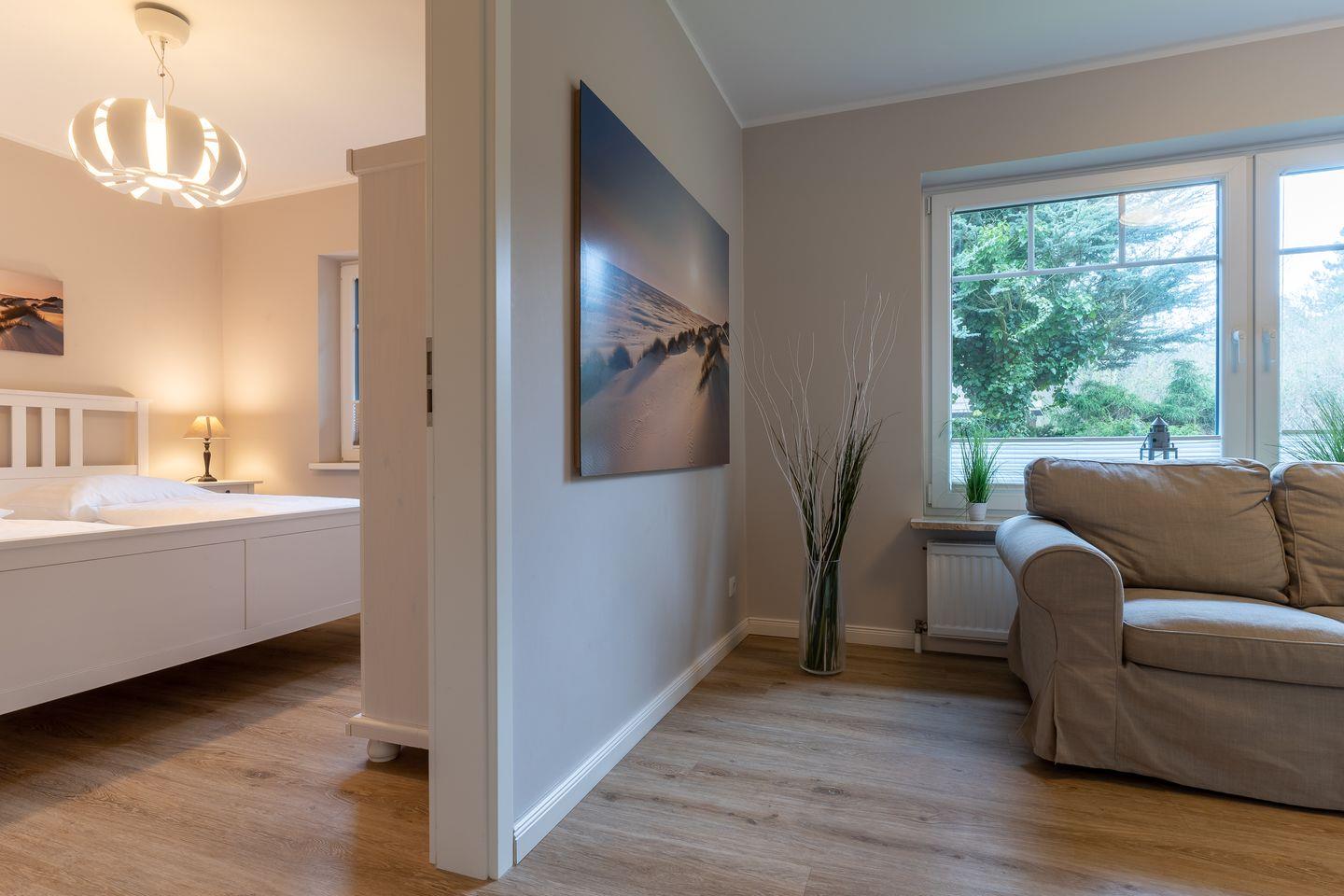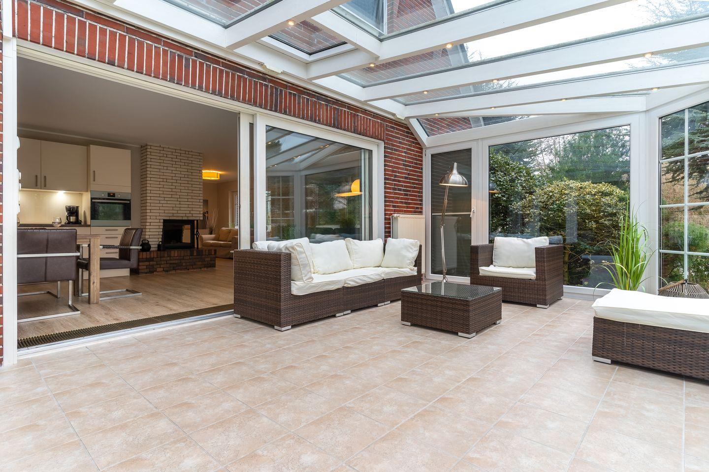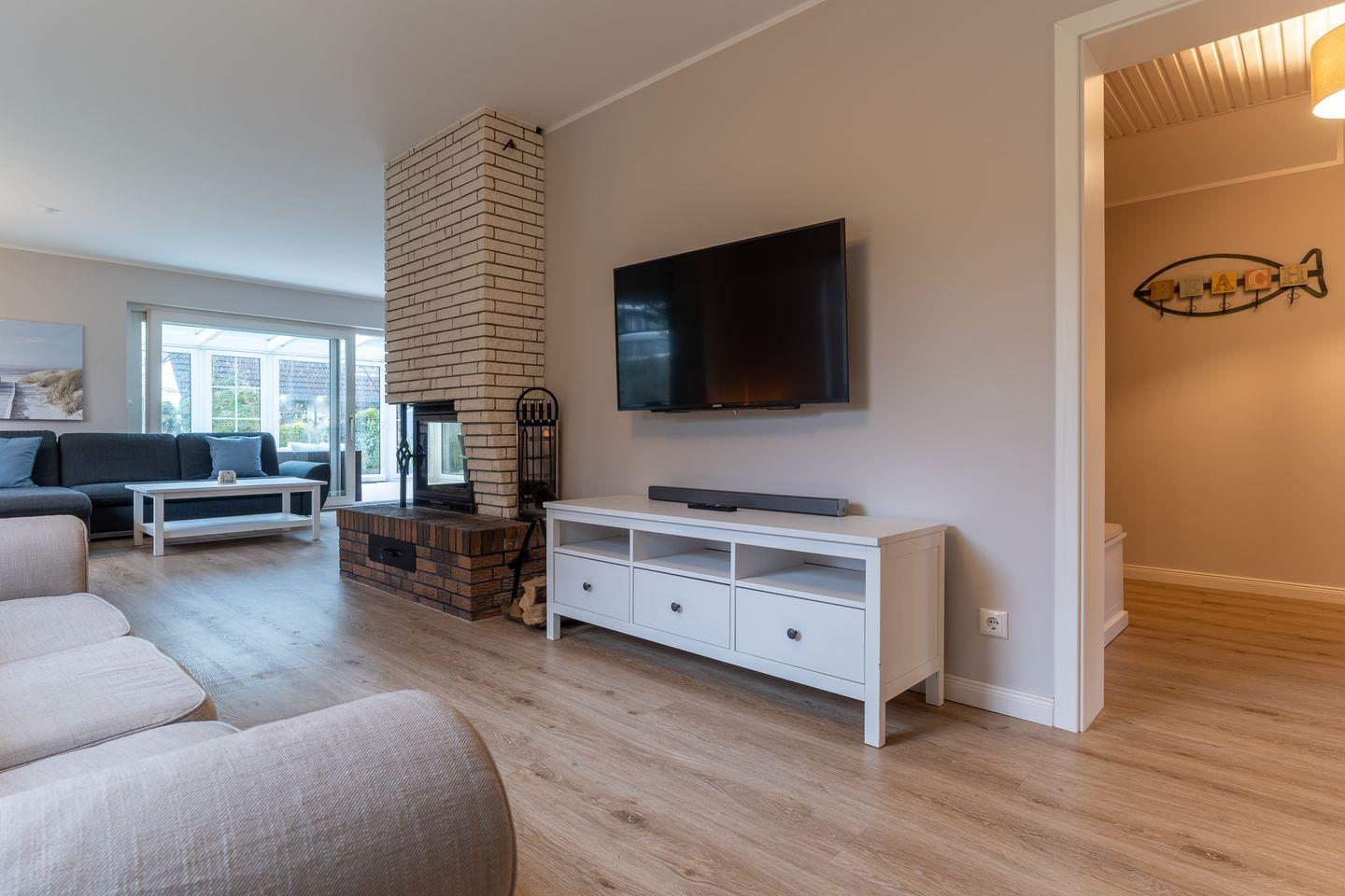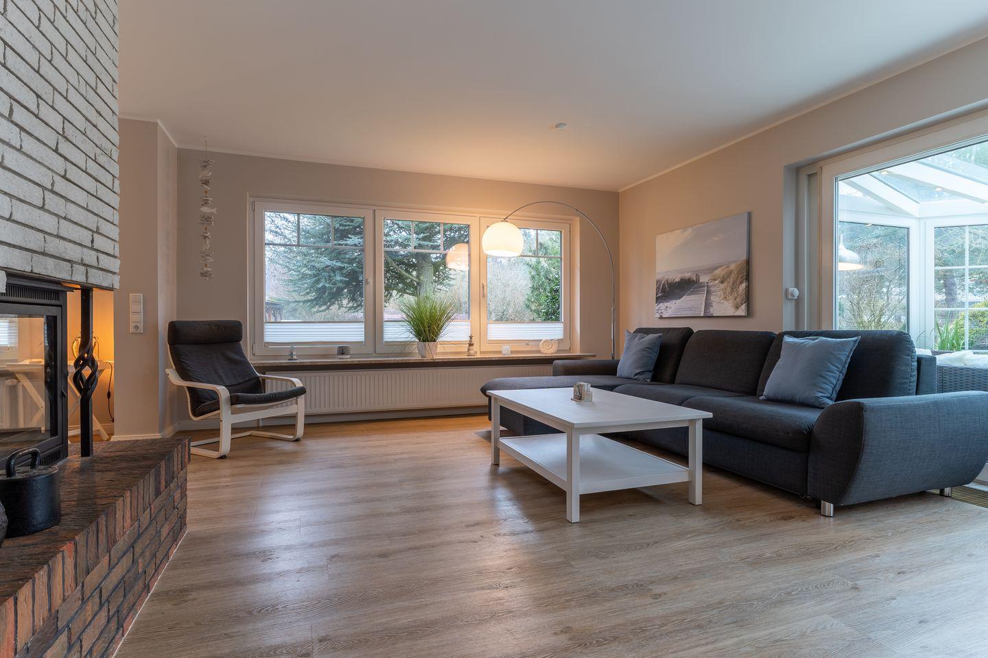 Modern eingerichtetes Appartement Rückenwind in St. Peter-Ording mit Wintergarten, Garten und Kamin für einen erholsamen Urlaub.
